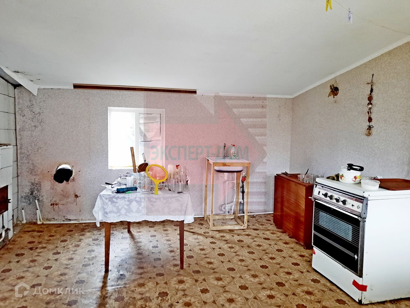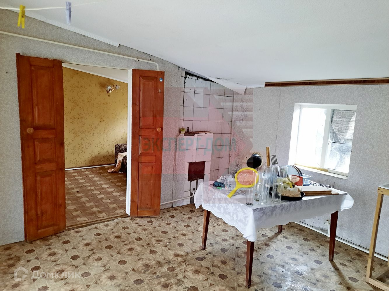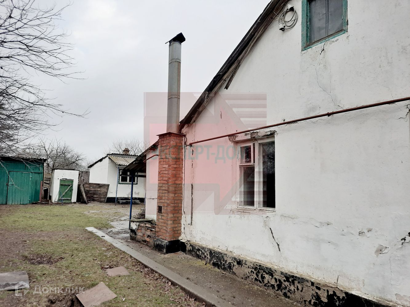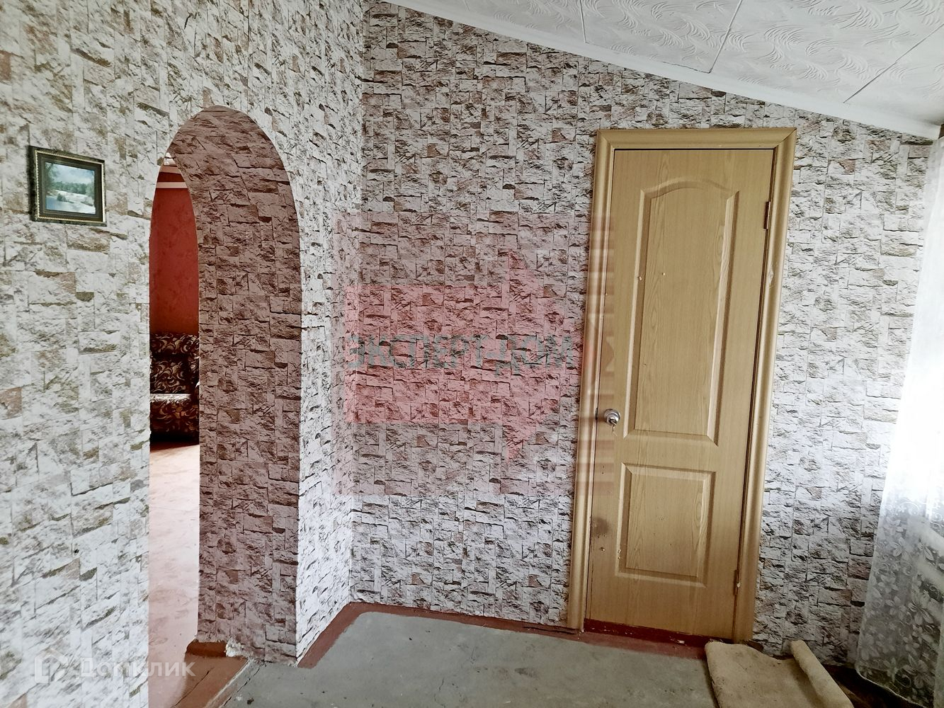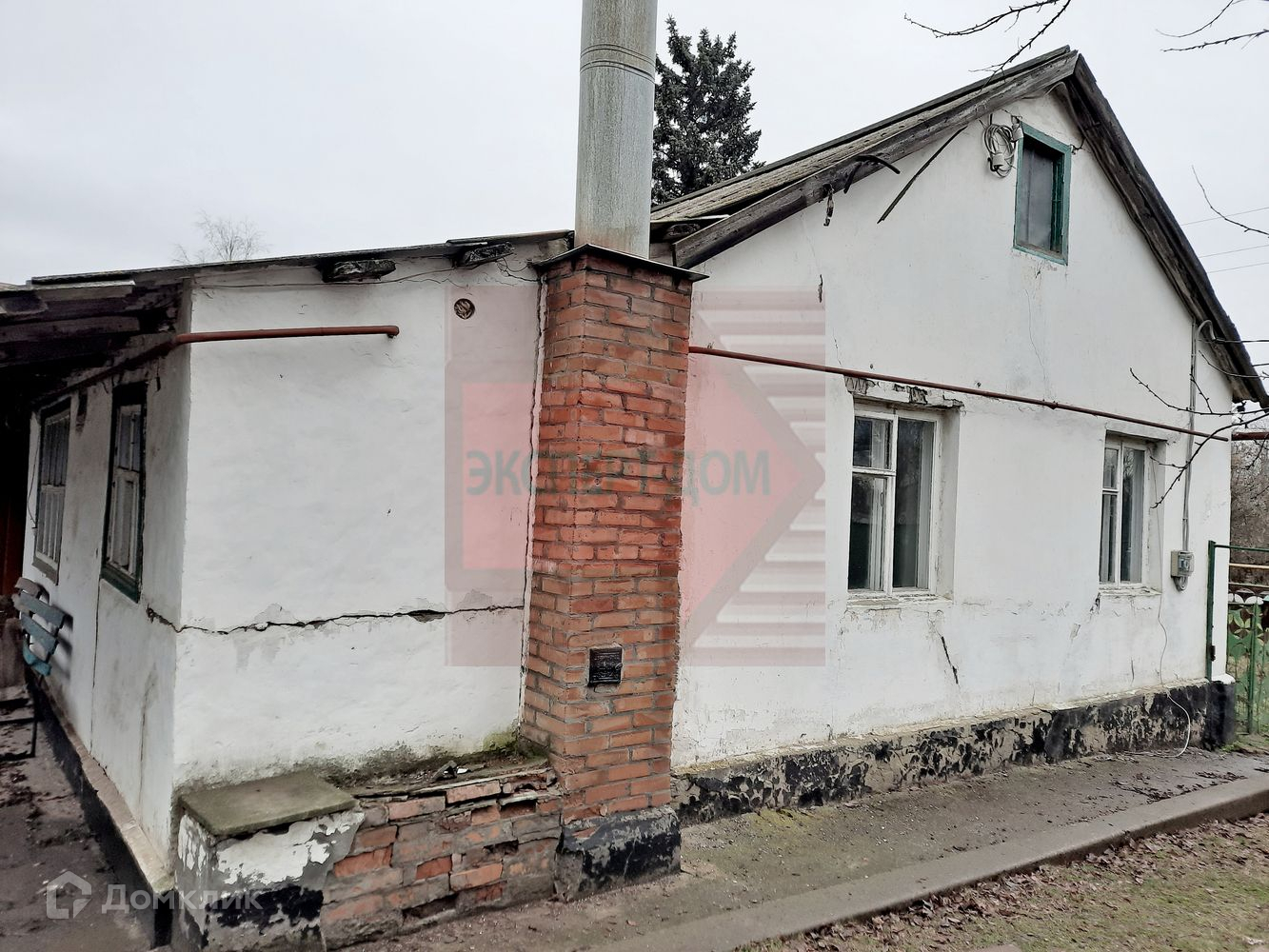 У дома квартирный статус. Дом кирпичный. Крыша шифер. Окна деревянные. На стенах обои.