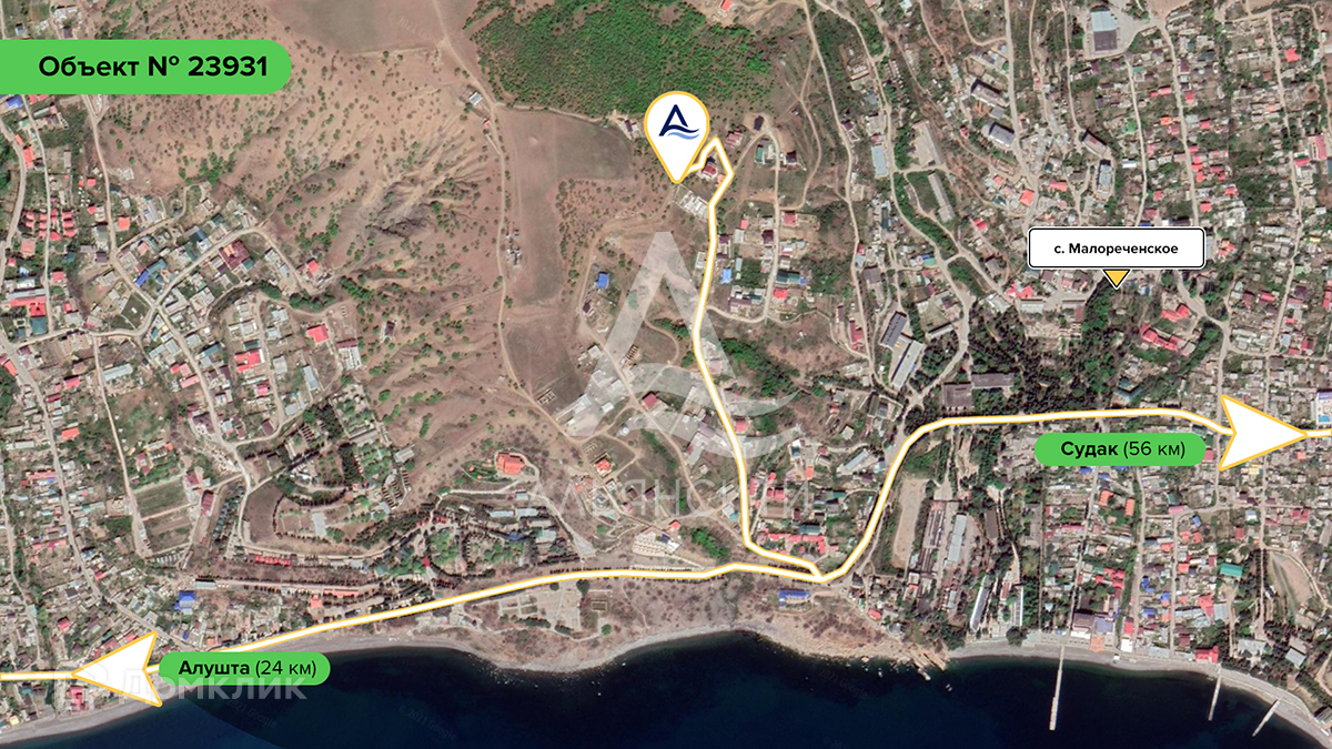Прекрасное расположение – всего 700 метров от моря. Участок расположен в тихом и спокойном районе вдали от городской суеты с видом на горы и море. Расстояние до Алушты около 24 километров. Транспортное сообщение осуществляется по автодороге Алушта — Судак.