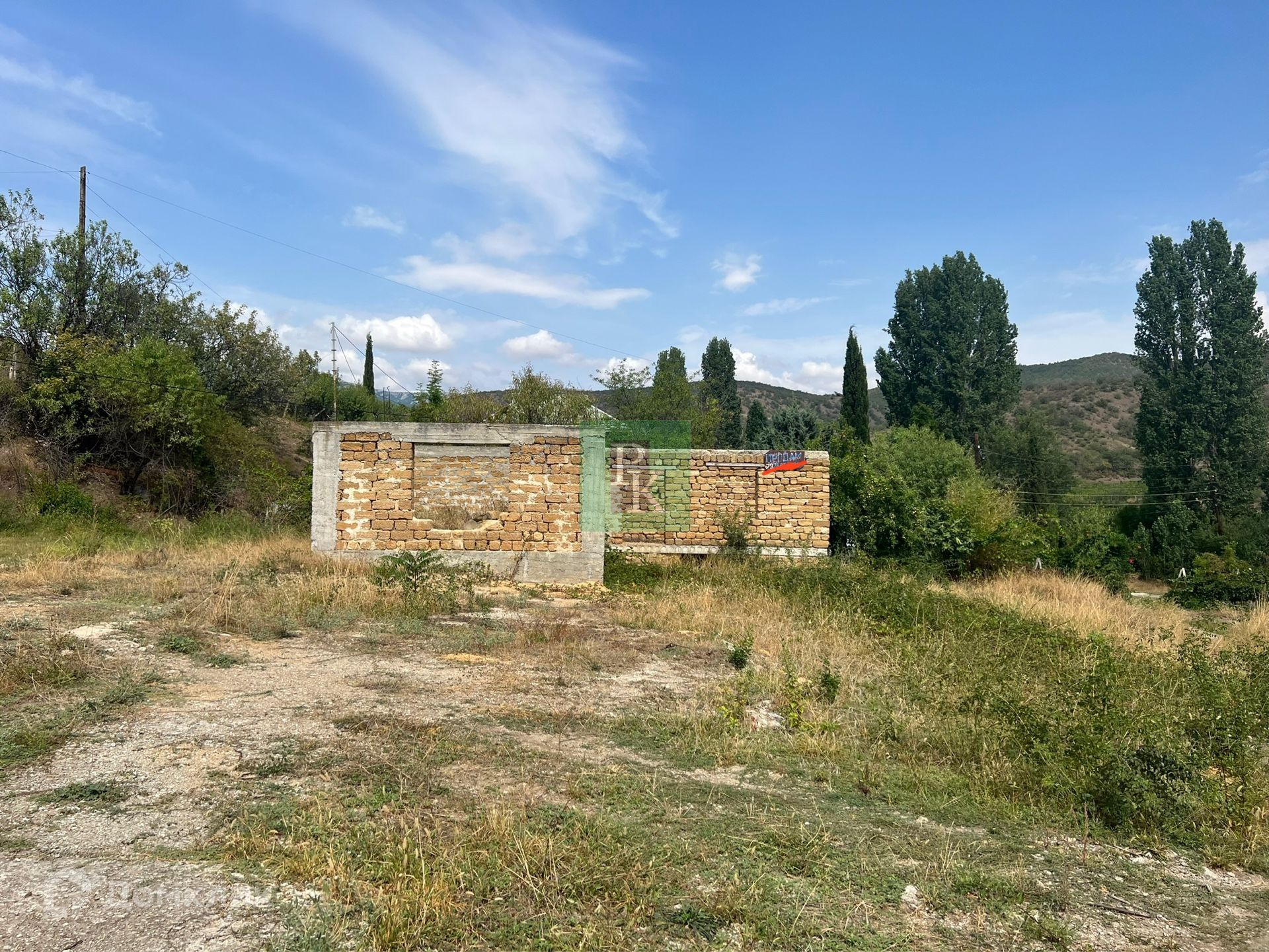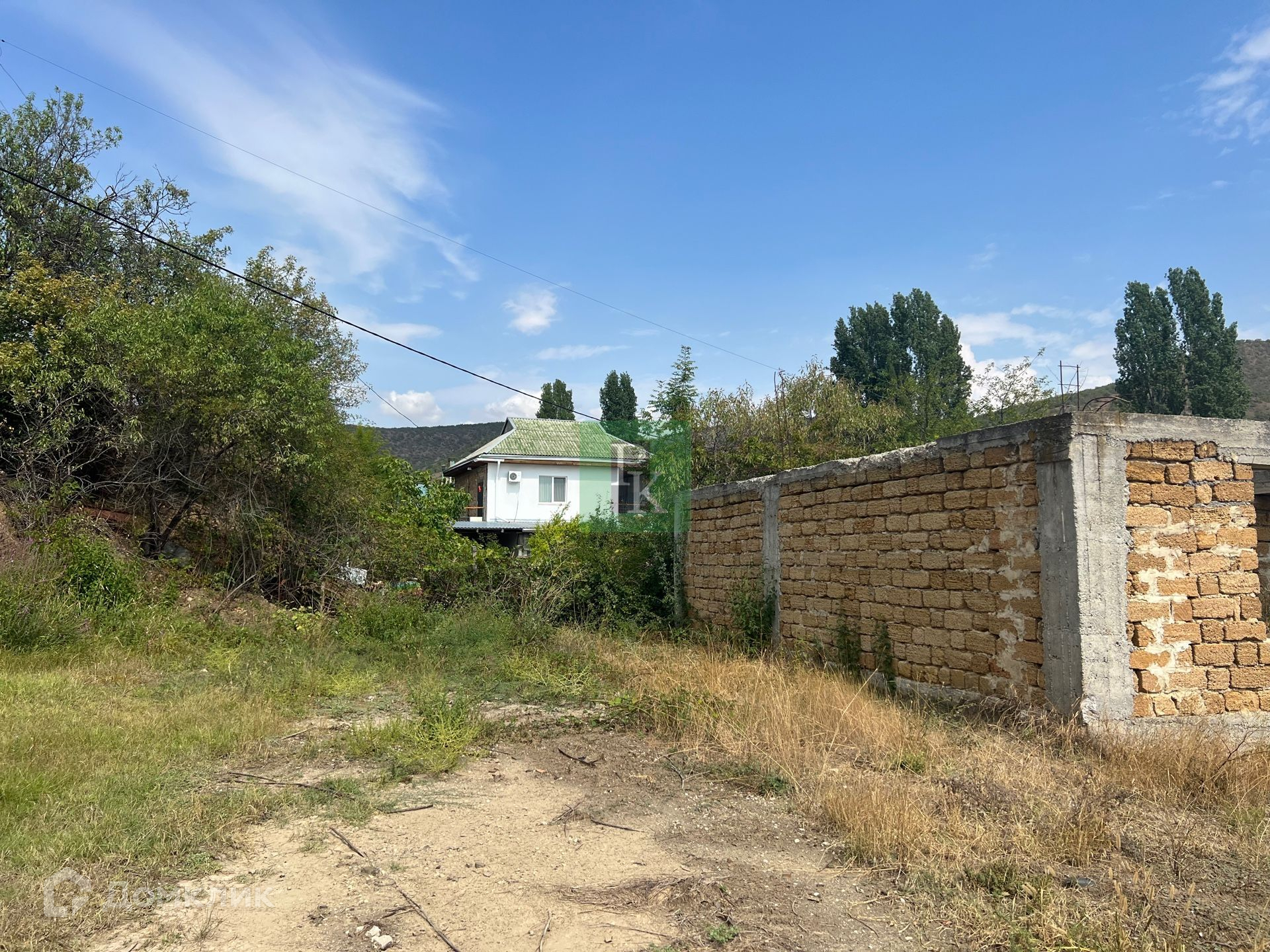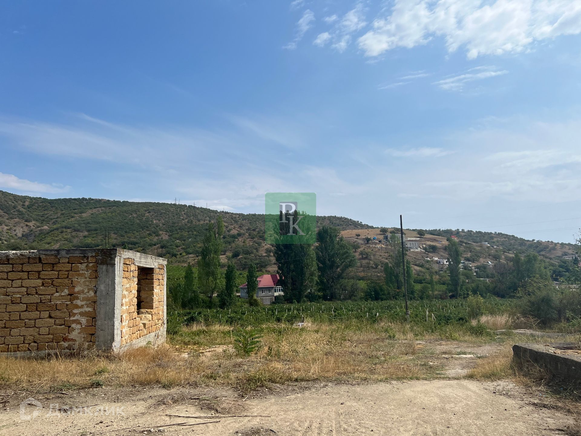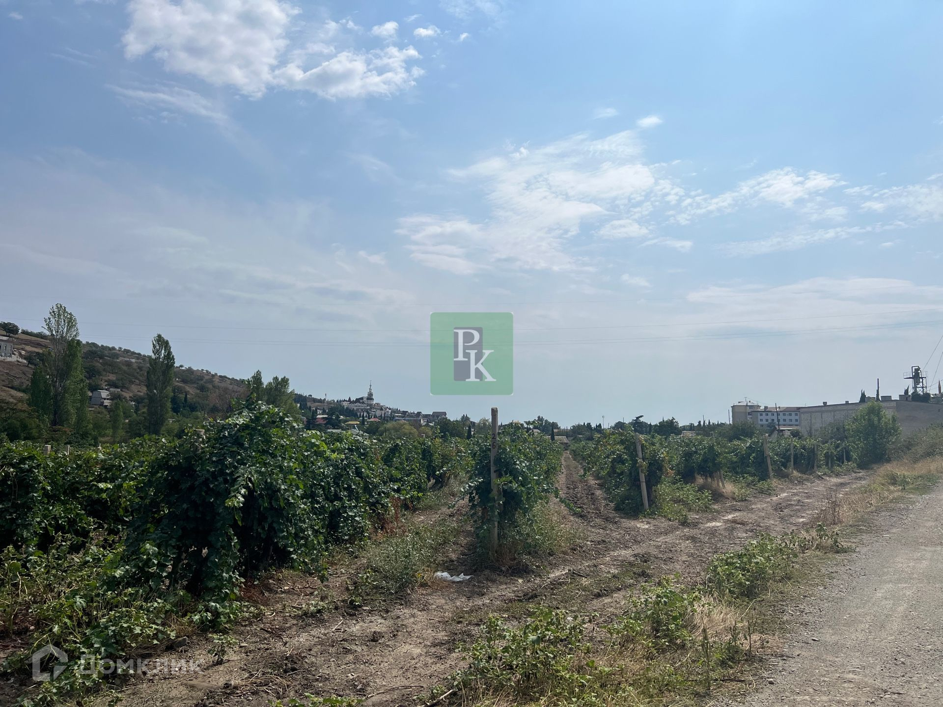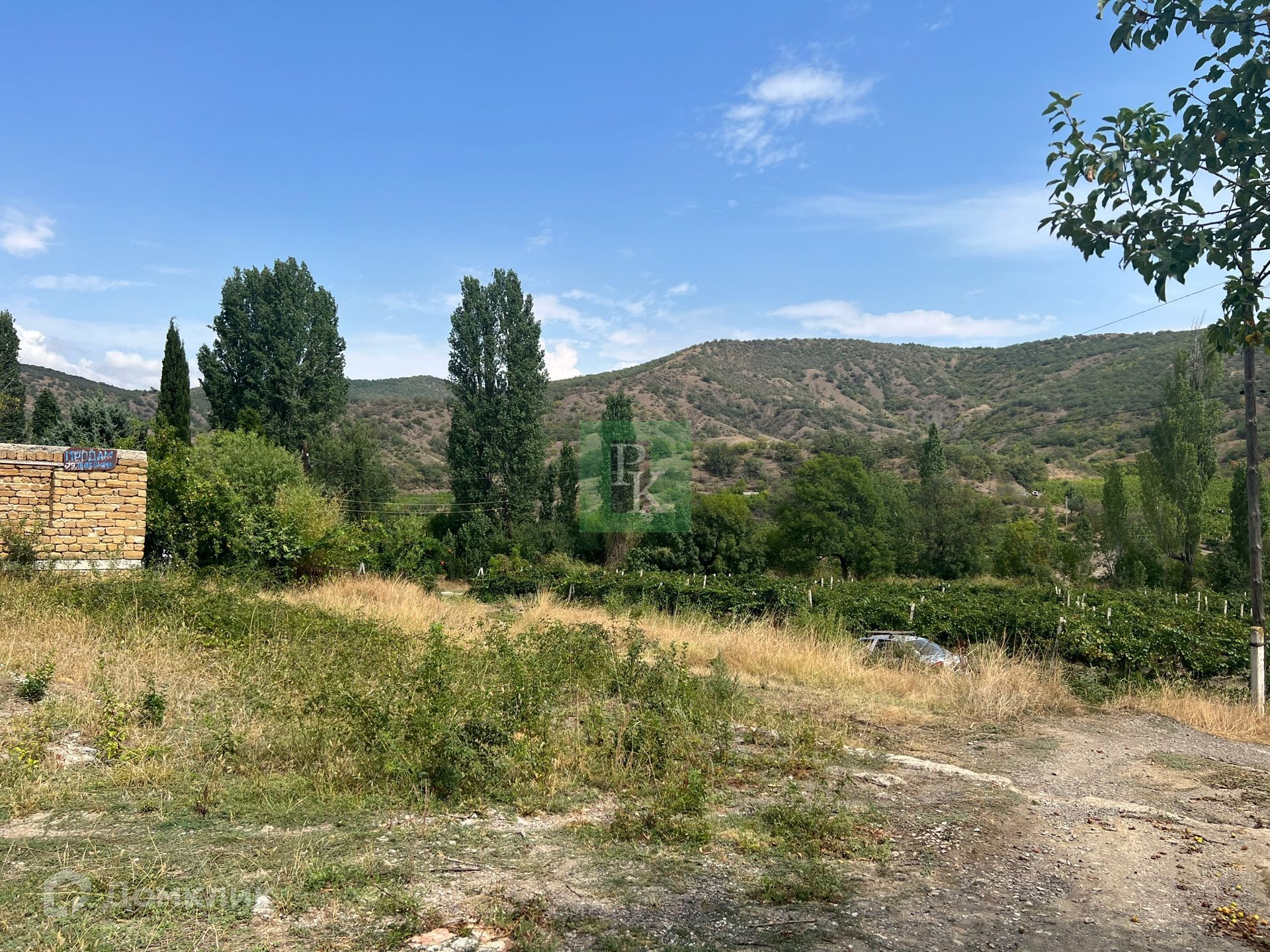 Участок ровный, прямоугольный, с красивым видом на виноградники и горы.