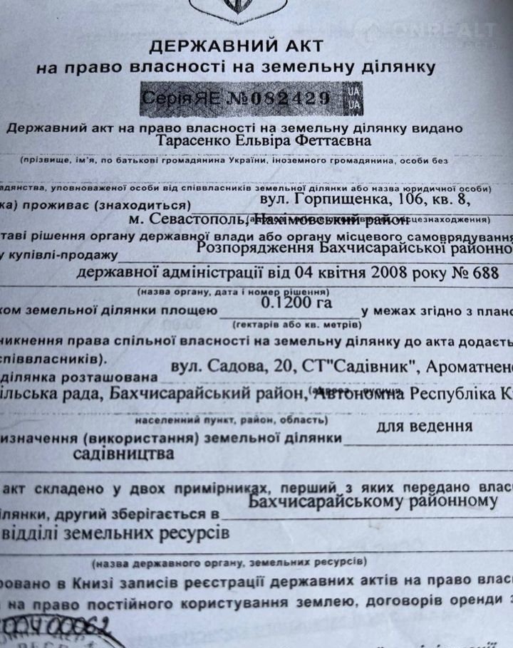 Участок в СНТ, 12 сот. на продажу в селе Маловидном, 35Н-069