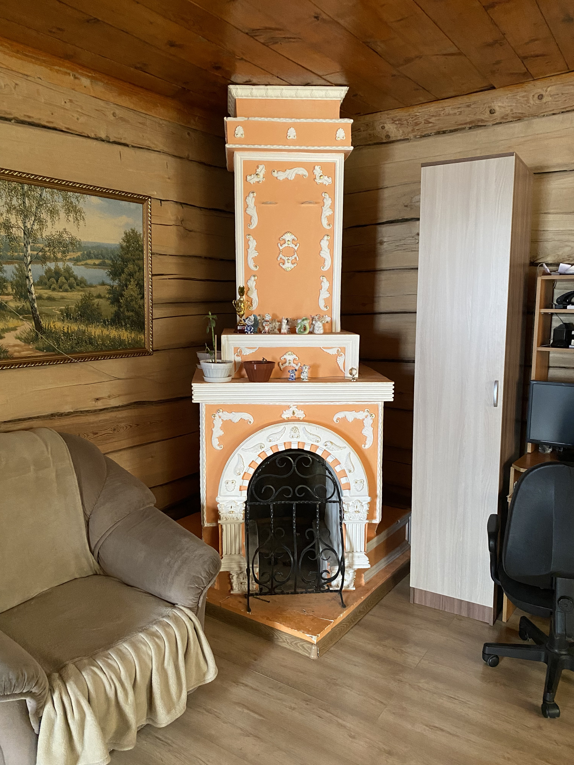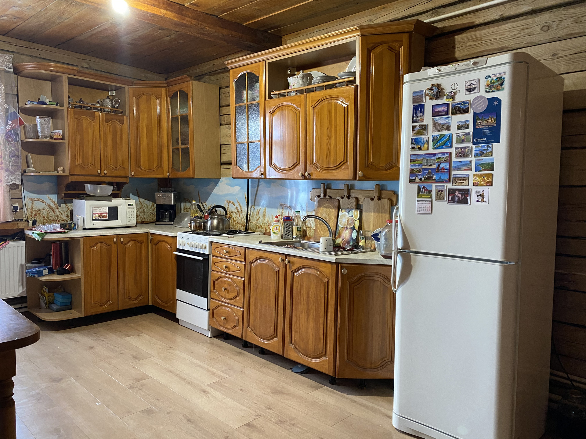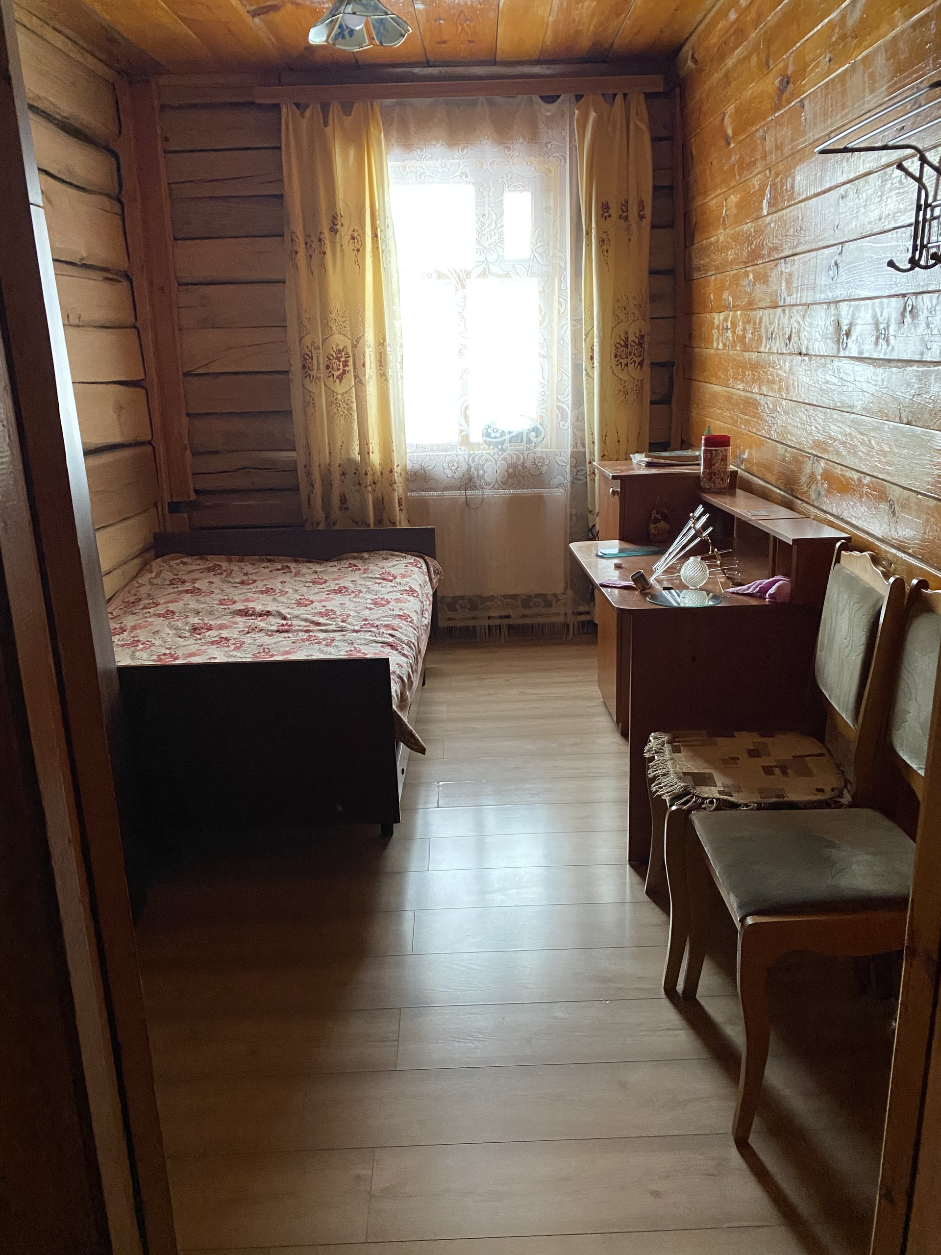 В доме три комнаты (зал + 2 спальни, на фото маленькая спальня), кухня, ванная (полы с подогревом), прихожая. Все коммуникации имеются, дом газифицирован, есть центральное водоснабжение. Баня примыкает к дому, в ней полы также с подогревом. Также есть веранда. Во дворе есть сарай, склад, дровяник, огород, палисадник. Дорожки во дворе выложены плиткой.