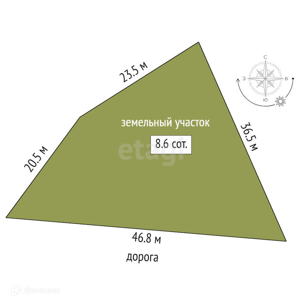 Площадь участка 8.6 сот.
