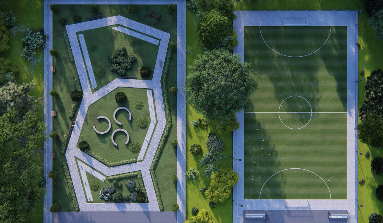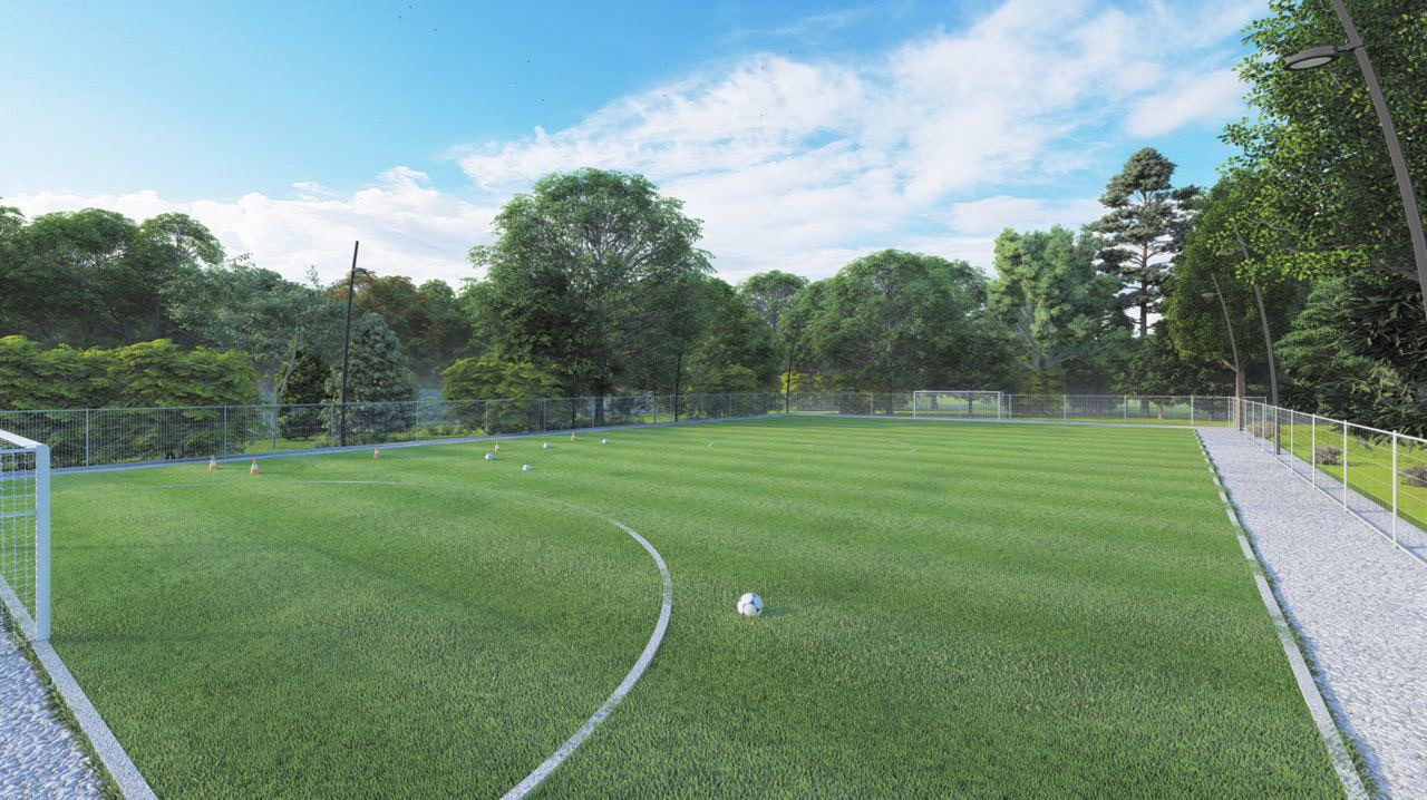 На территории КП будет футбольное поле, детские и прогулочные площадки, есть прямой выход к Лесу и Озеру, 2 выездные группы.