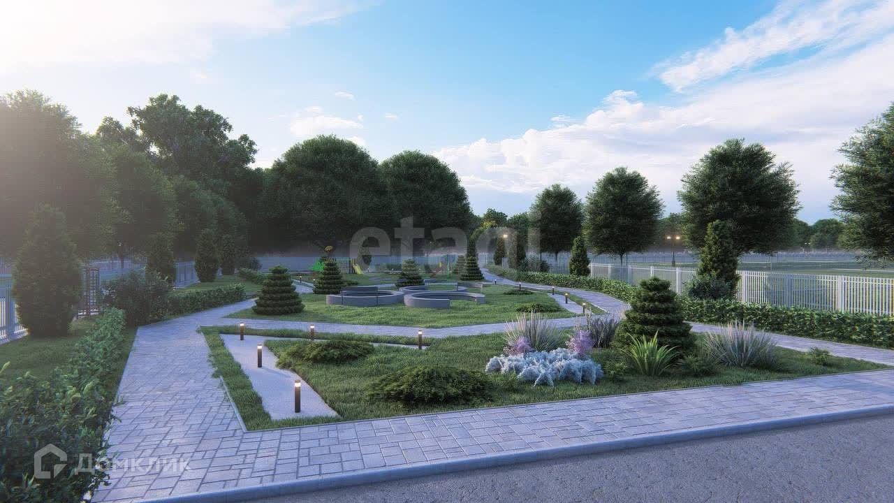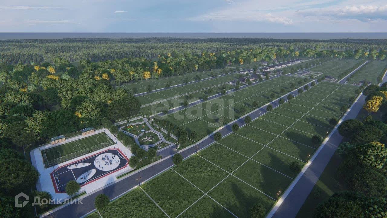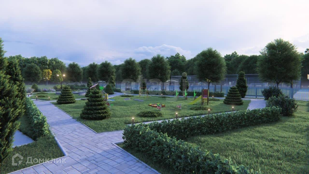 Современный благоустроенный поселок с детской площадкой, парком для прогулок, футбольным полем, асфальтированной парковкой на 40 мест.