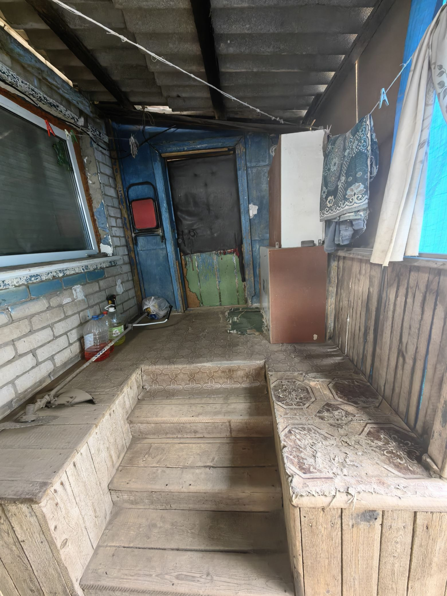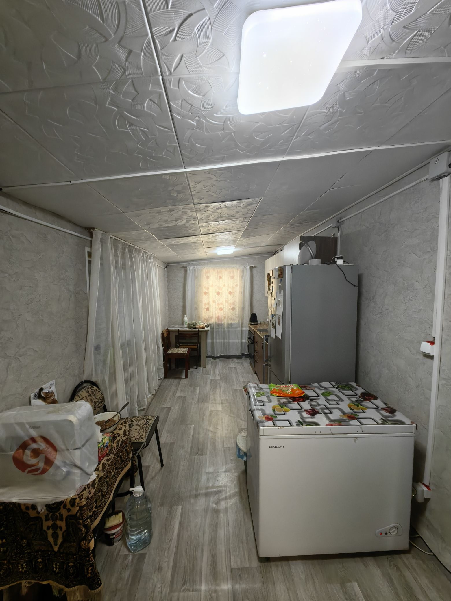 Небольшая летняя веранда - кухня, находится в холодной пристройке.