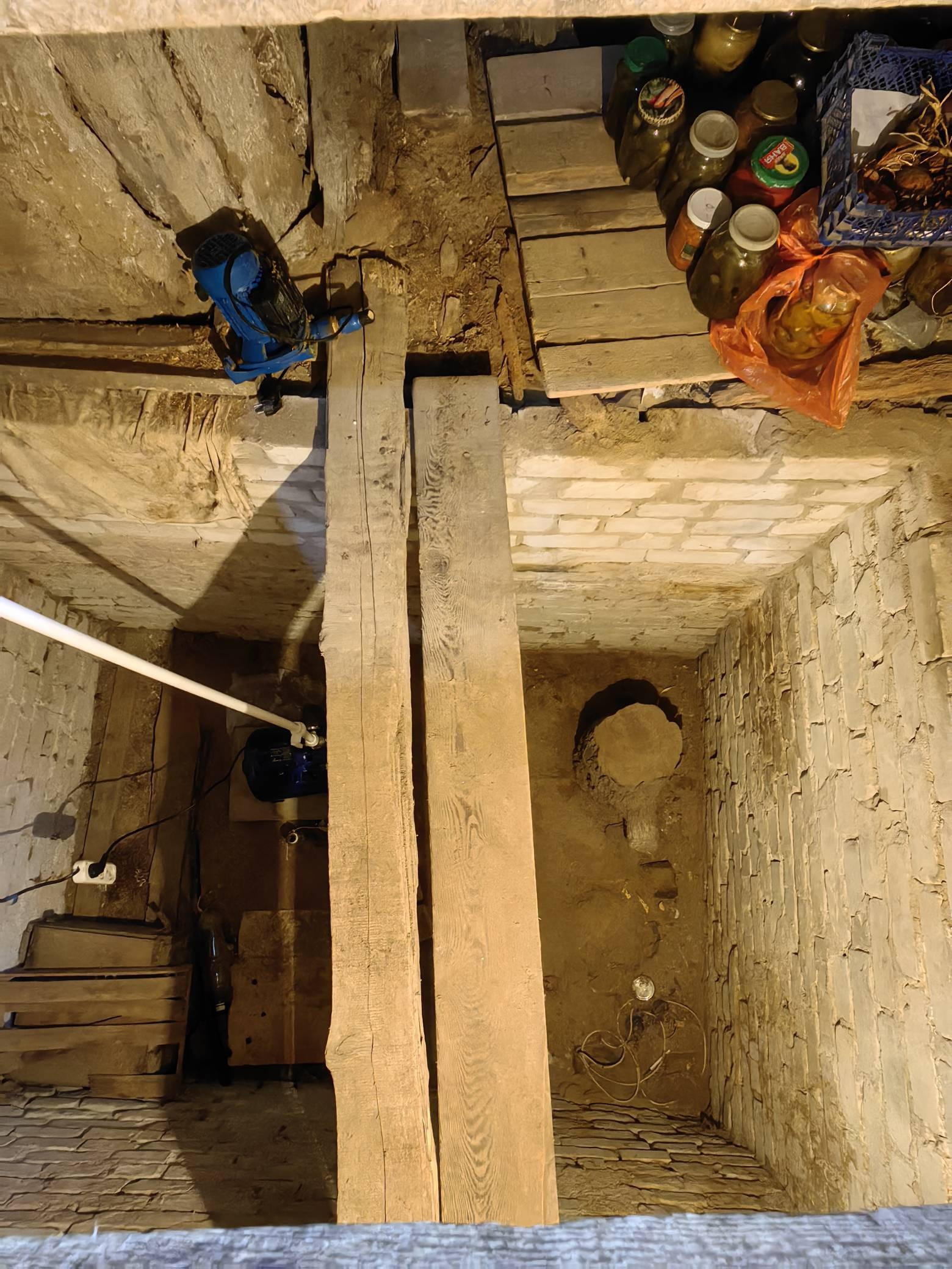 Подвал сухой, большой. В нём также хранятся запасы овощей и консервации.