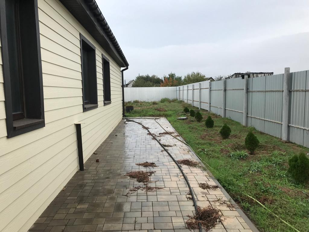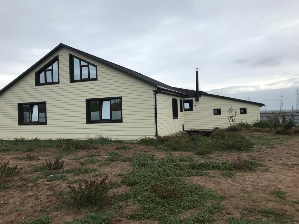 Дом капитальный ( строили для себя) стены 60 см  с утеплителем обшит кедралом. Без внутренней отделки. Заведен в дом газ и установлен котел отопления и газовая плита, полностью смонтирована электропроводка со всей электрикой, питьевая вода в доме, канализация септик. Подвальные помещения под всем домом. Гараж 45 м2 на две машины, ворота подъемные электрические. Забор металлический по всему периметру. Асфальтовая дорога вдоль дома. Рядом школа, дет/садик, магазины, остановки общественного транспорта, федеральная трасса.