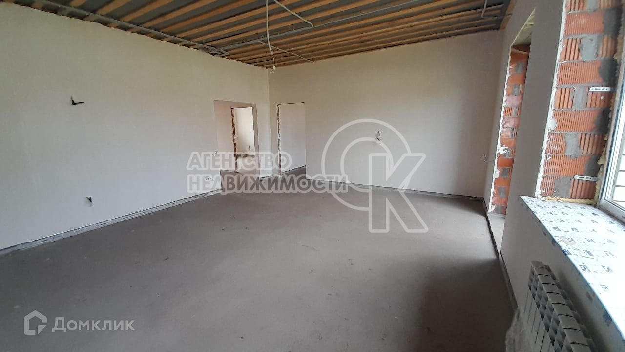 кухня-гостиная, три спальни,  санузел, стены выровнены под маяк, теплый наливной пол по всему дому, разводка электричества и отопления,