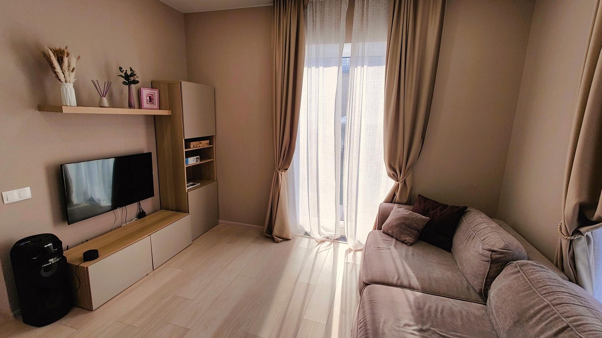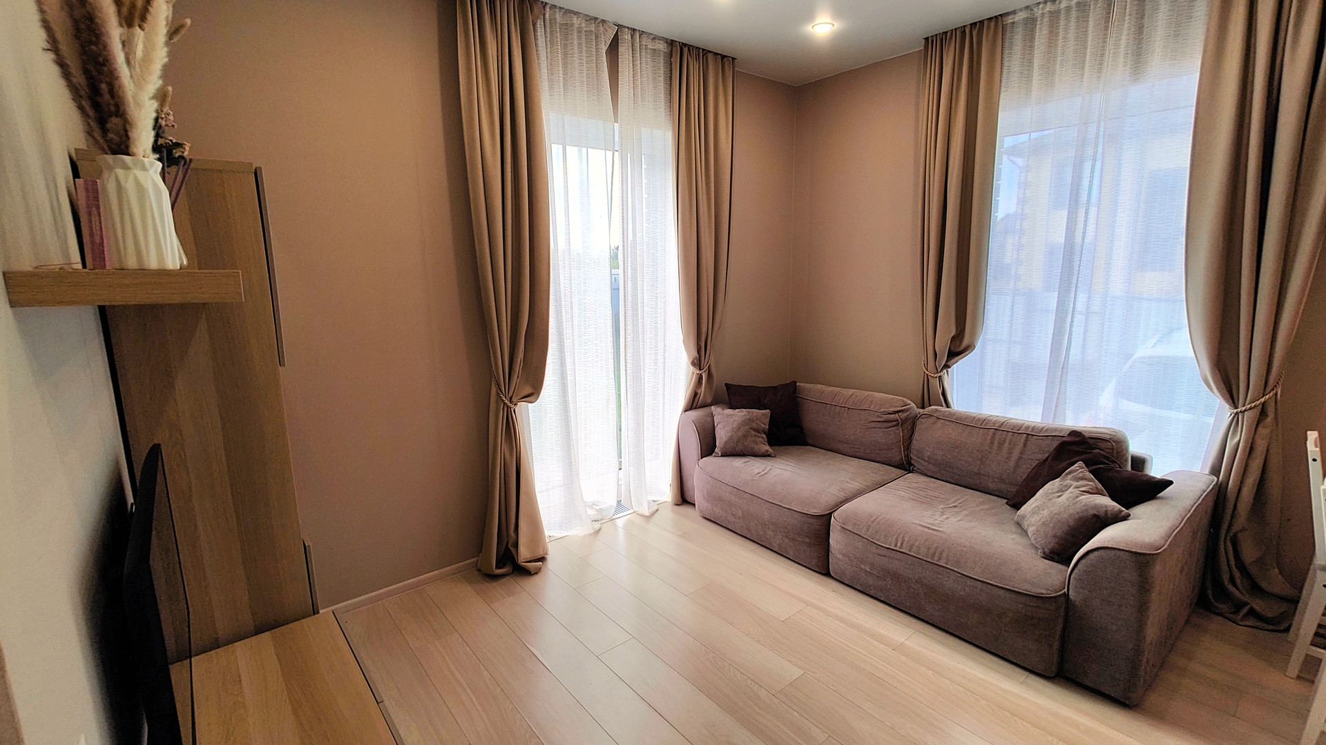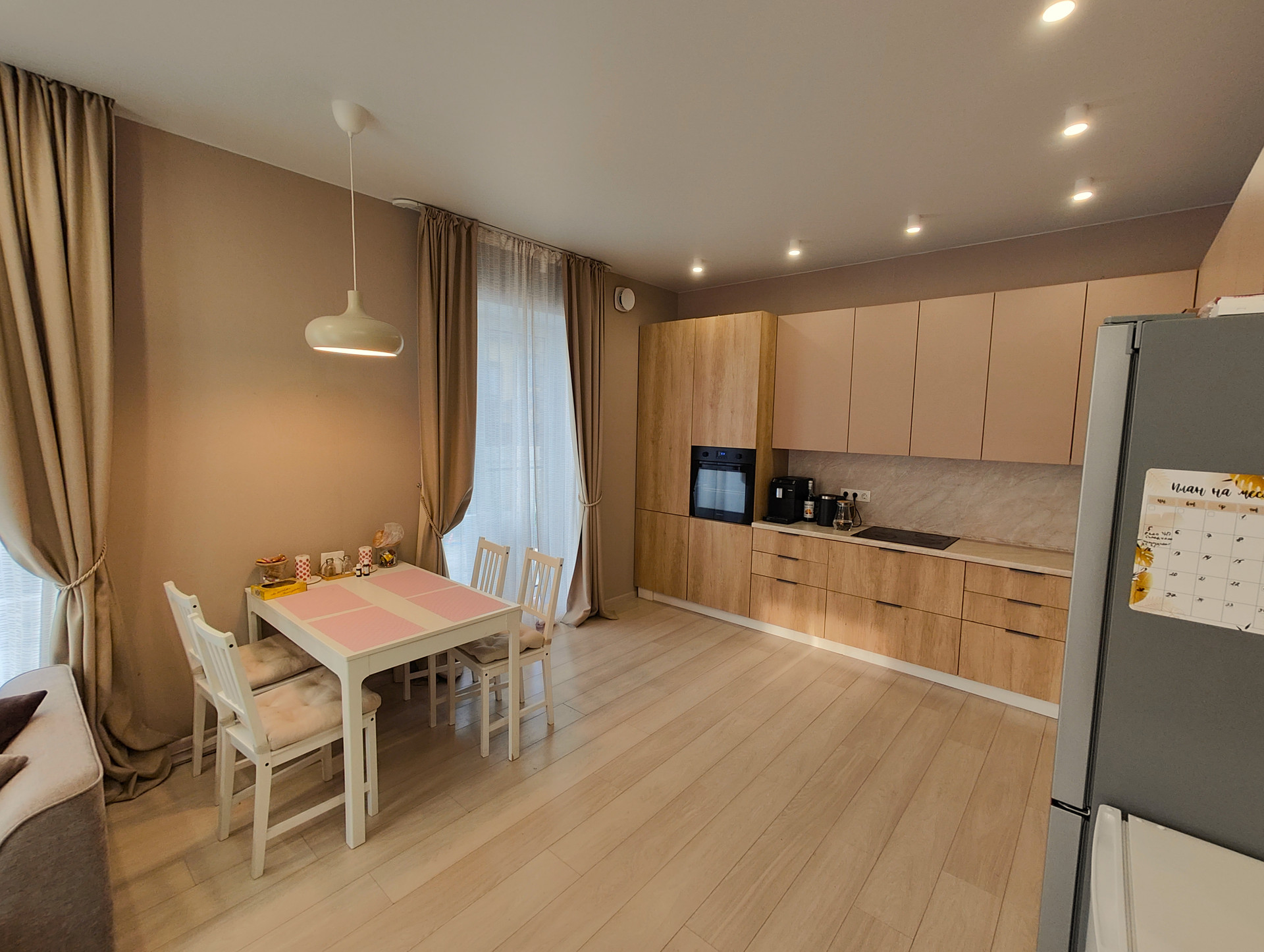 - Кухня-гостиная с панорамными окнами и отдельным выходом.