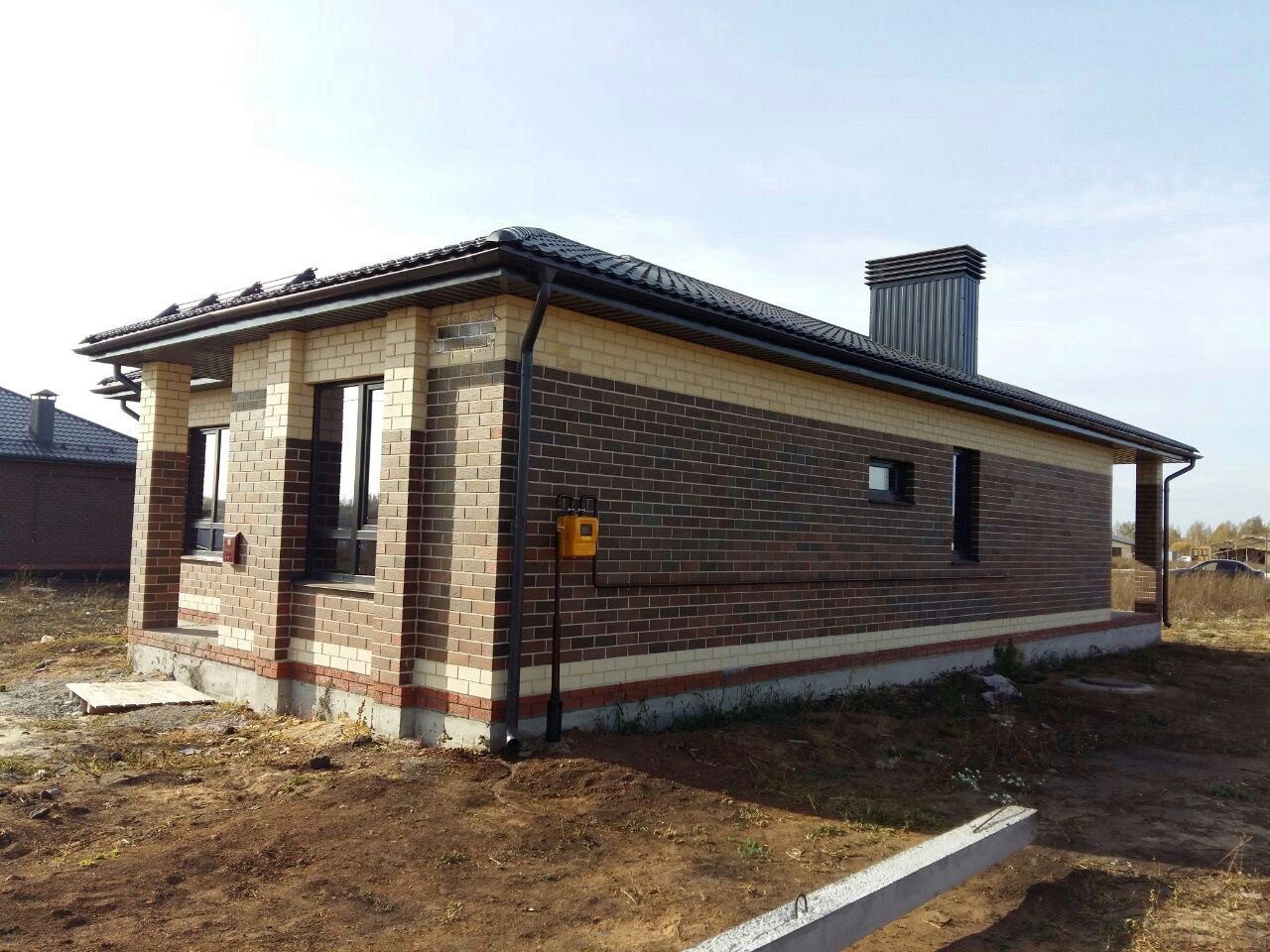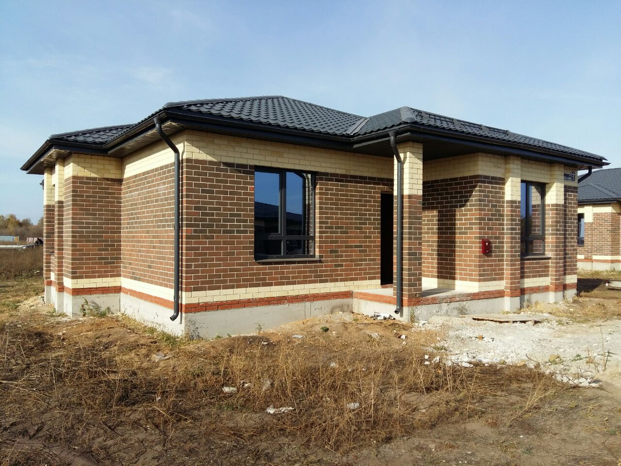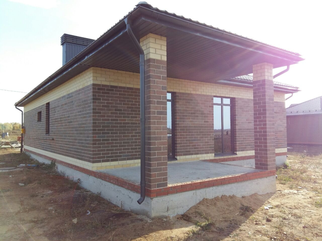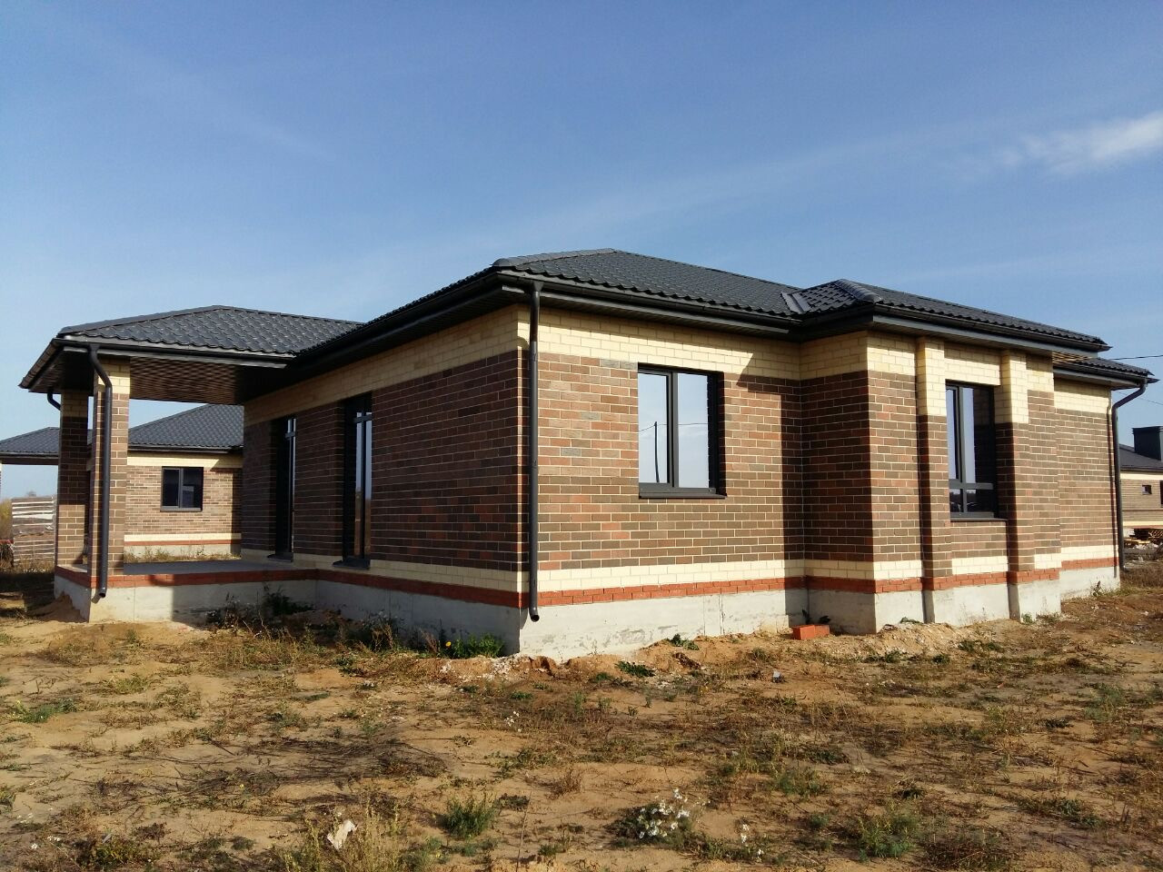 ✅Построен из керамического кирпича, фасад облицовочный кирпич, фундамент ленточный на сваях, окна тройной стеклопакет, крыша металлочерепица. Высота потолков 3 метра, теплые полы по всему дому, радиаторы, стены оштукатурены и ошпатлеваны, электроразводка, полусухая стяжка пола, установлен газовый котел, хорошая металлическая входная дверь. Все коммуникации заведены в дом и подключены, вода - скважина, канализация - септик.