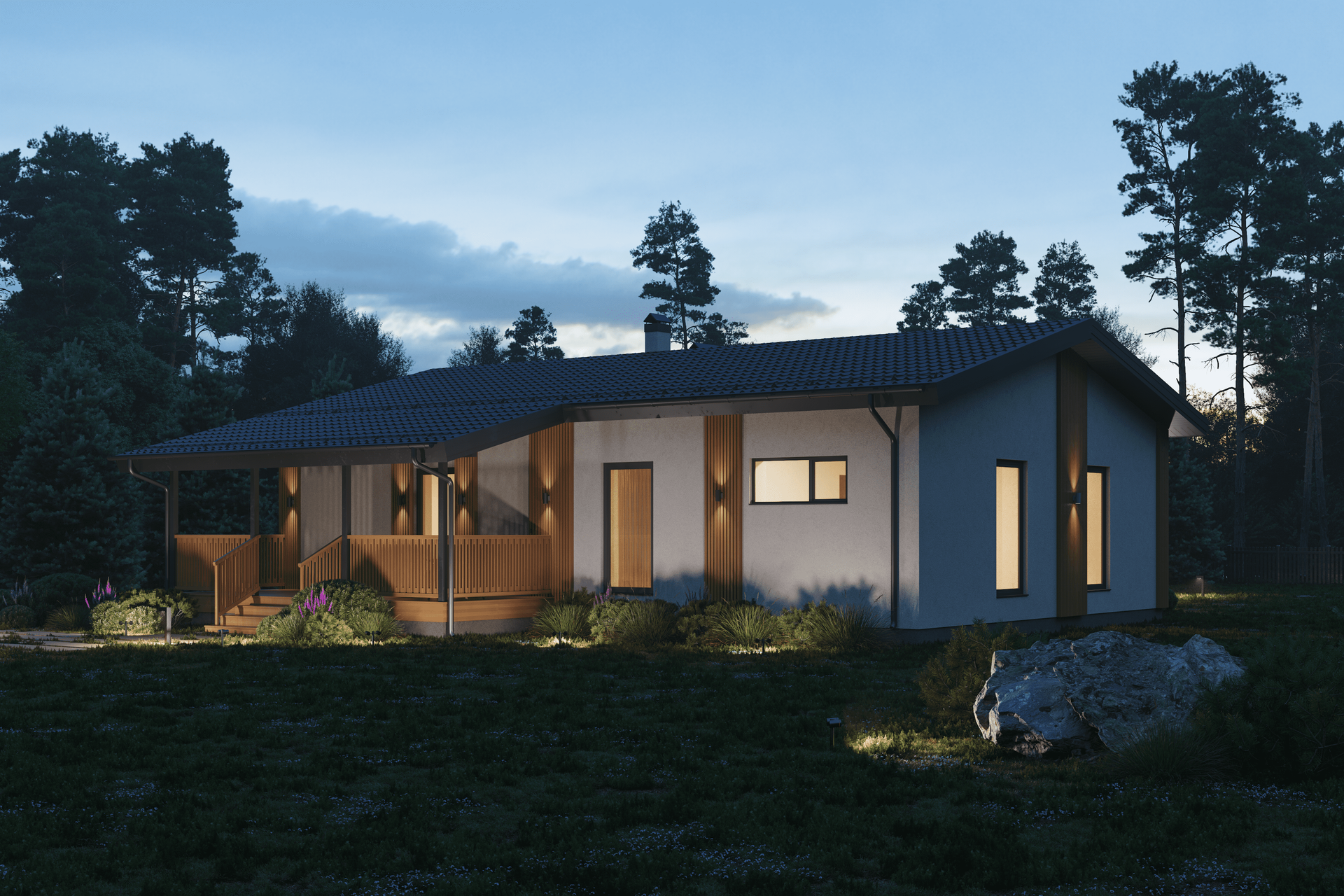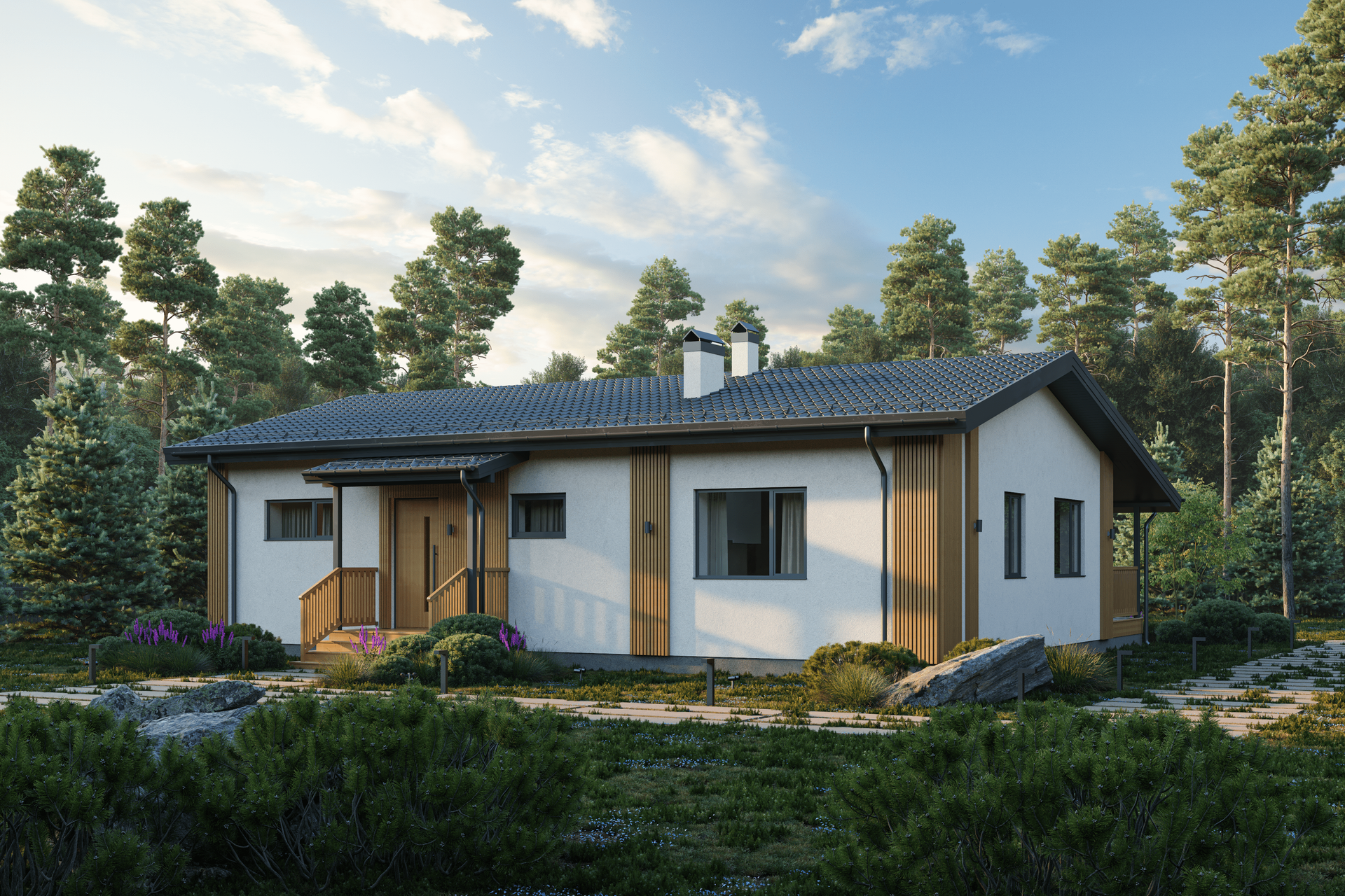 Дом в Званке - 110 - это одноэтажный дом в скандинавском стиле площадью 110 м².