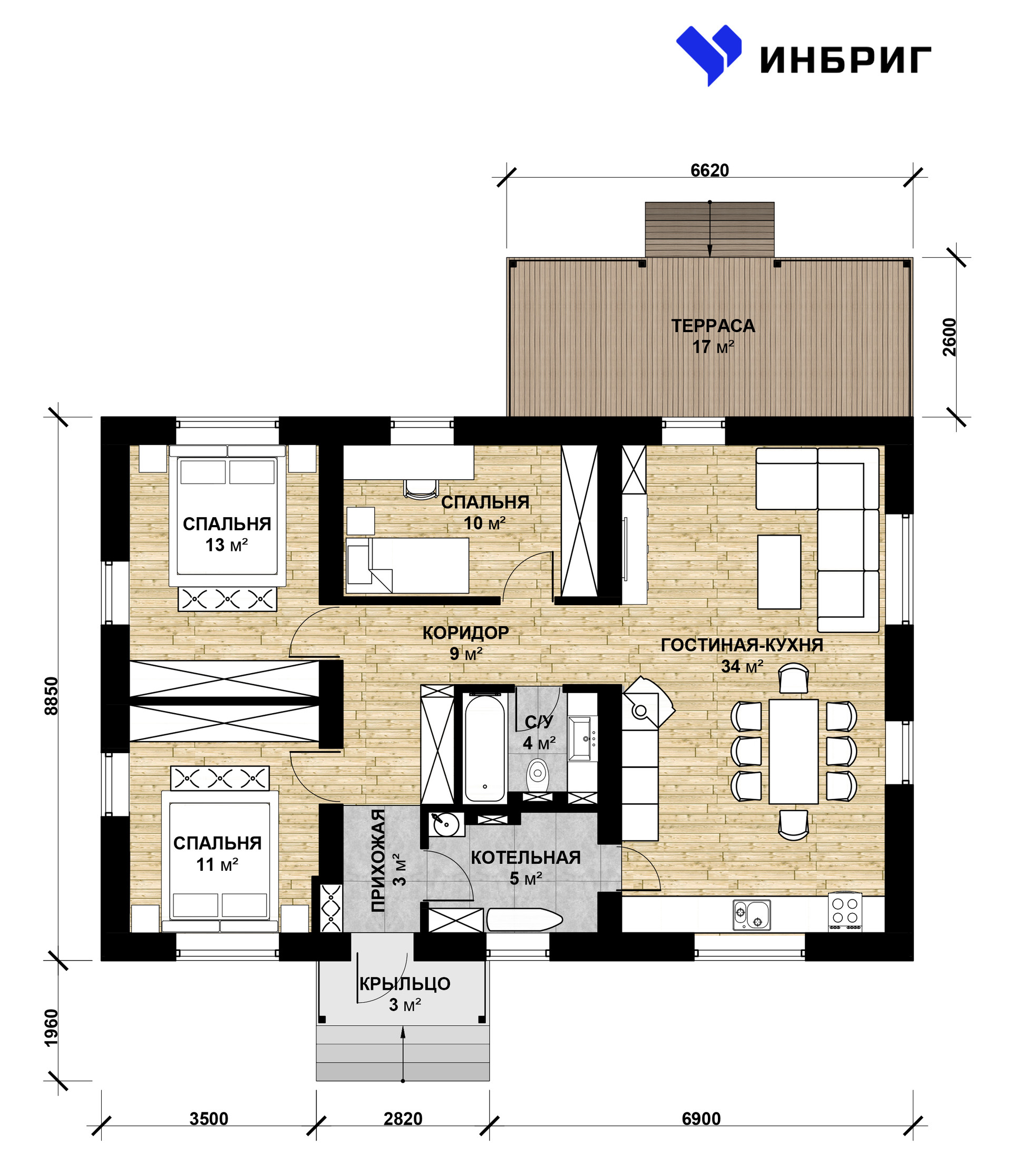- терраса площадью 17 м²