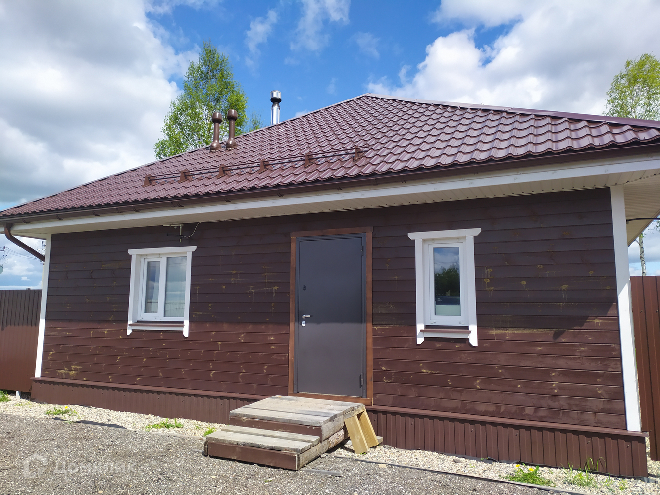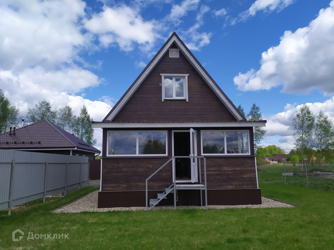 Территория благоустроена, установлена и оборудована мангальная зона. Участок огорожен, сделан насыпной въезд для машин и ворота.