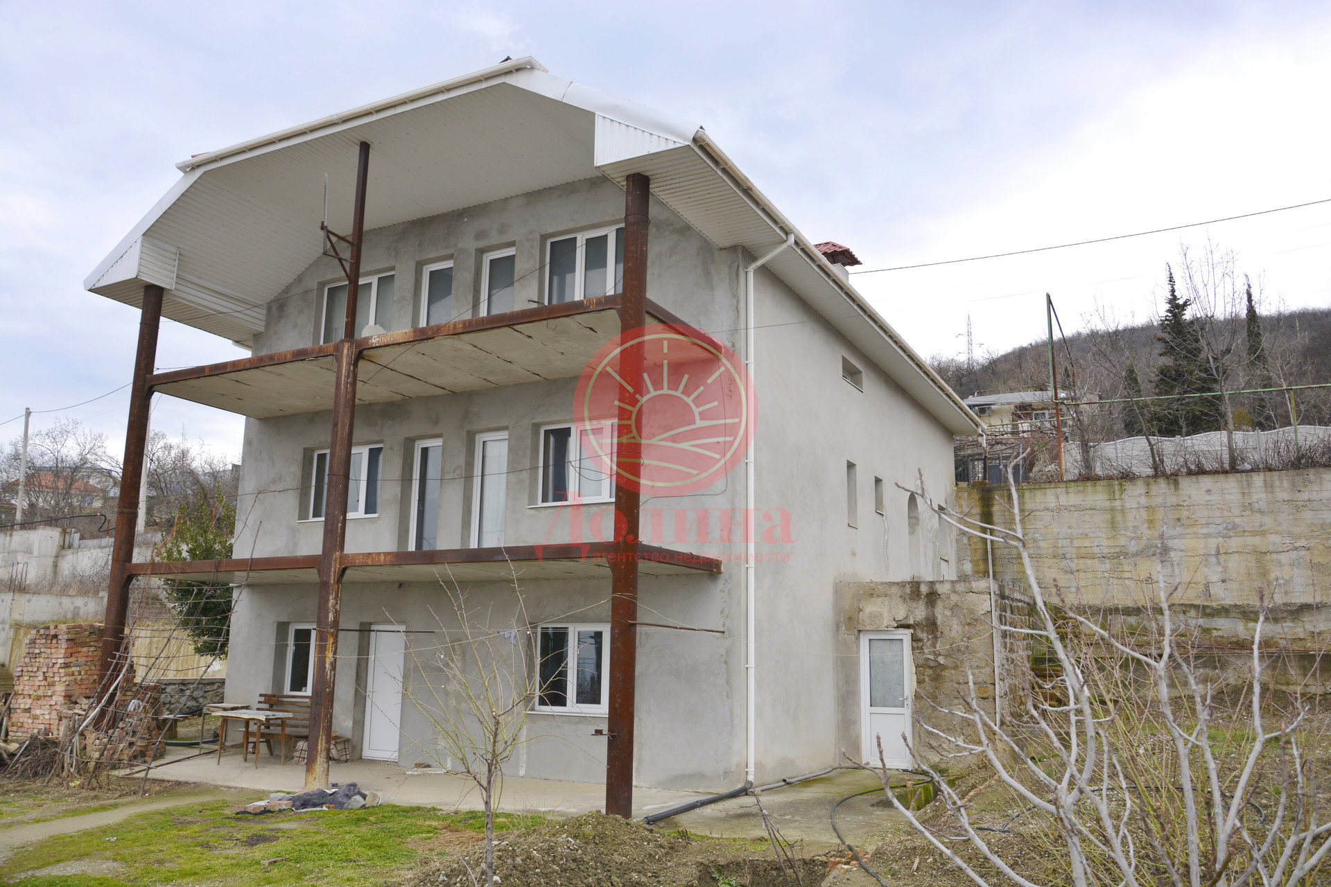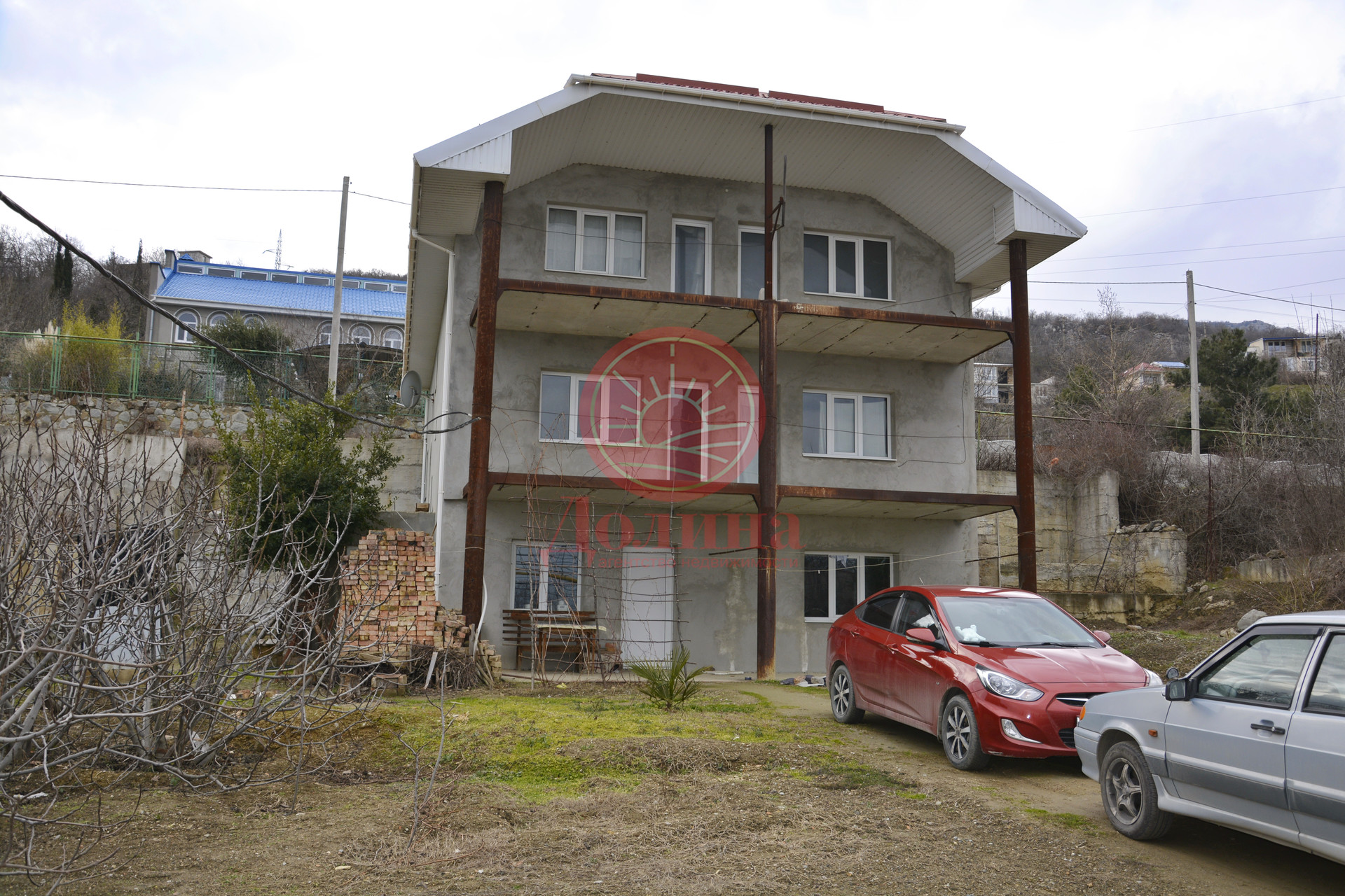 Продается 3-х этажный дом (без внутренней отделки) на участке земли 9,44 сотки (ИЖС) в г. Алушта с. Малый Маяк по улице Виноградная. Дом общей площадью 265,4 кв.м. сдан в эксплуатацию (с возможностью прописки). На 1 этаже: две комнаты по 28,4 кв.м., кухня 7,6 кв.м, и комнаты свободного назначения 4,3 кв.м. 8,1 кв.м. 8,1 кв.м. 4,3 кв.м. 7,6 кв.м. На 2 этаже: две комнаты площадью 8,8кв.м. с сан. узлами площадью по 1,9кв.м., два коридора площадью 4,3кв.м., комната 13,4кв.м., две смежные комнаты с отдельным входом площадью 9,8кв.м. и 10,6кв. м. с сан. узлом 2,5кв.м., коридор 9кв.м., кладовая 4,1кв.м. Этаж «Мансарда» две комнаты по 13,9 кв.м. с сан. узлами по 1,9 кв.м., кладовая 2,5 кв.м, прихожая 4,3кв.м., комната 9,8 кв.м. и 10,6 кв.м. с сан. узлом 2,5кв.м., комнатой 13,4 кв.м., прихожая 9 кв.м. По обеим сторонам дома, на уровне второго этажа, две видовые площадки по 17кв.м. с отдельными выходами. На втором и третьем этажах просторные террасы с прекрасным видом на Черное море, где можно встречать рассветы. Дом построен с соблюдением антисейсмических норм, железобетонное основание, стены ракушечник, с наружи заштукатурены. Крыша – металлочерепица. Установлены металлопластиковые окна и двери. Разведена сантехника и частично сделана электрика. Коммуникации: вода и канализация централизованное, свет трехфазная линия на 12 кВт, газ проходит по краю участка. Подъездной путь: асфальтированная дорога. На территории участка построен отдельно-стоящий гараж площадью 28 кв.м. До центра поселка, где расположены магазины, школа, остановка общественного транспорта, идти около 10-15мин. Ниже по дороге, около одного километра, расположен поселок Утес с небольшой, но красивой набережной, пляжами, рядом дворец княгини Гагариной и прекрасный парк санатория Карасан. Поселок находится в 10 минутах езды от г. Алушта и 25 минутах от г. Ялты. Это тихое место для жизни и отдыха! Звоните сейчас, мы будем рады показать этот дом в удобное для Вас время!