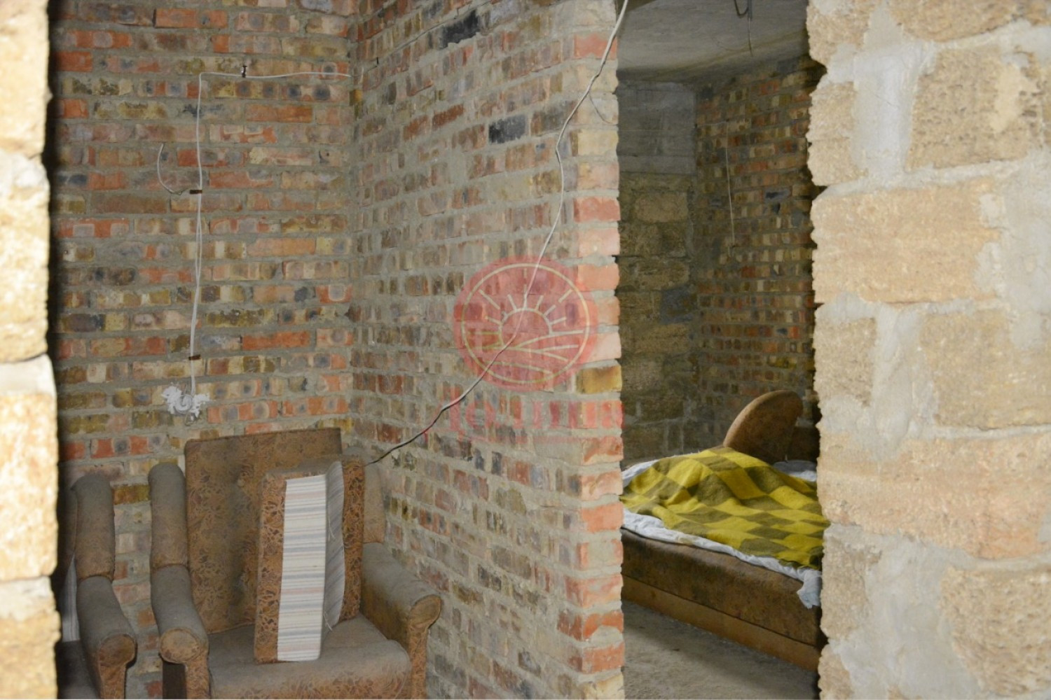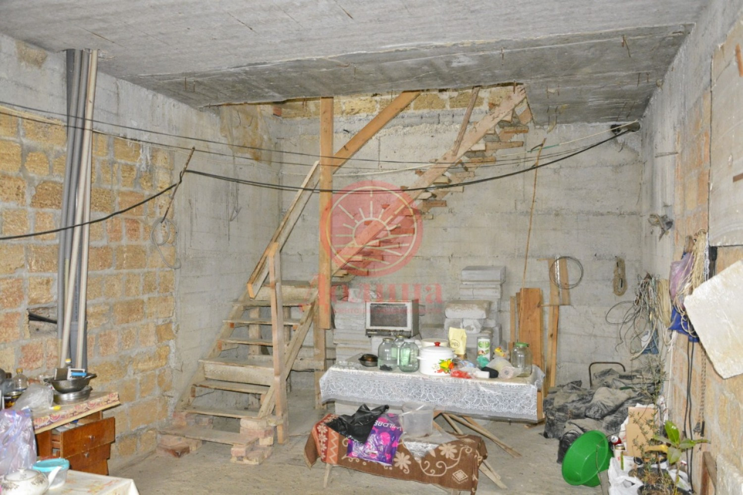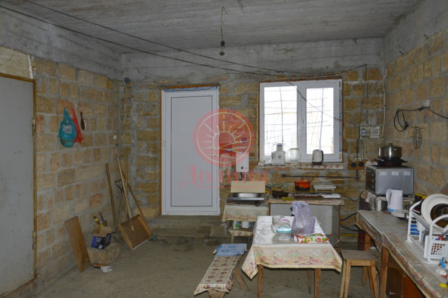 Материал постройки дома: железобетонное основание, стены ракушечник, снаружи оштукатурены.