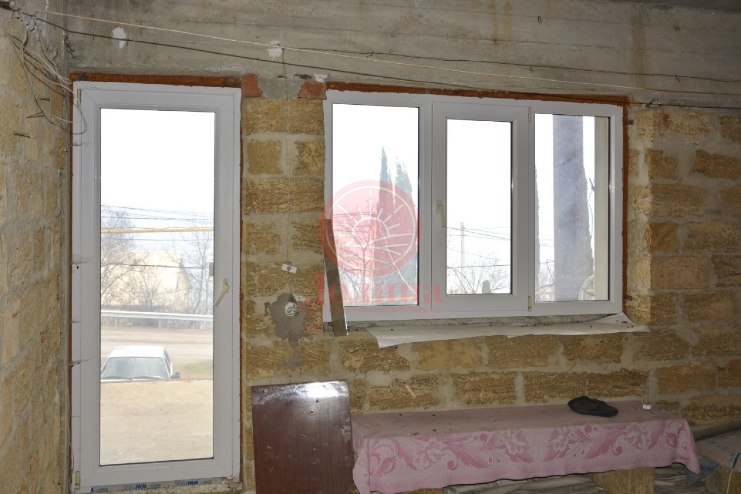 Установлены металлопластиковые окна и двери. Разведена сантехника и частично сделана электрика.