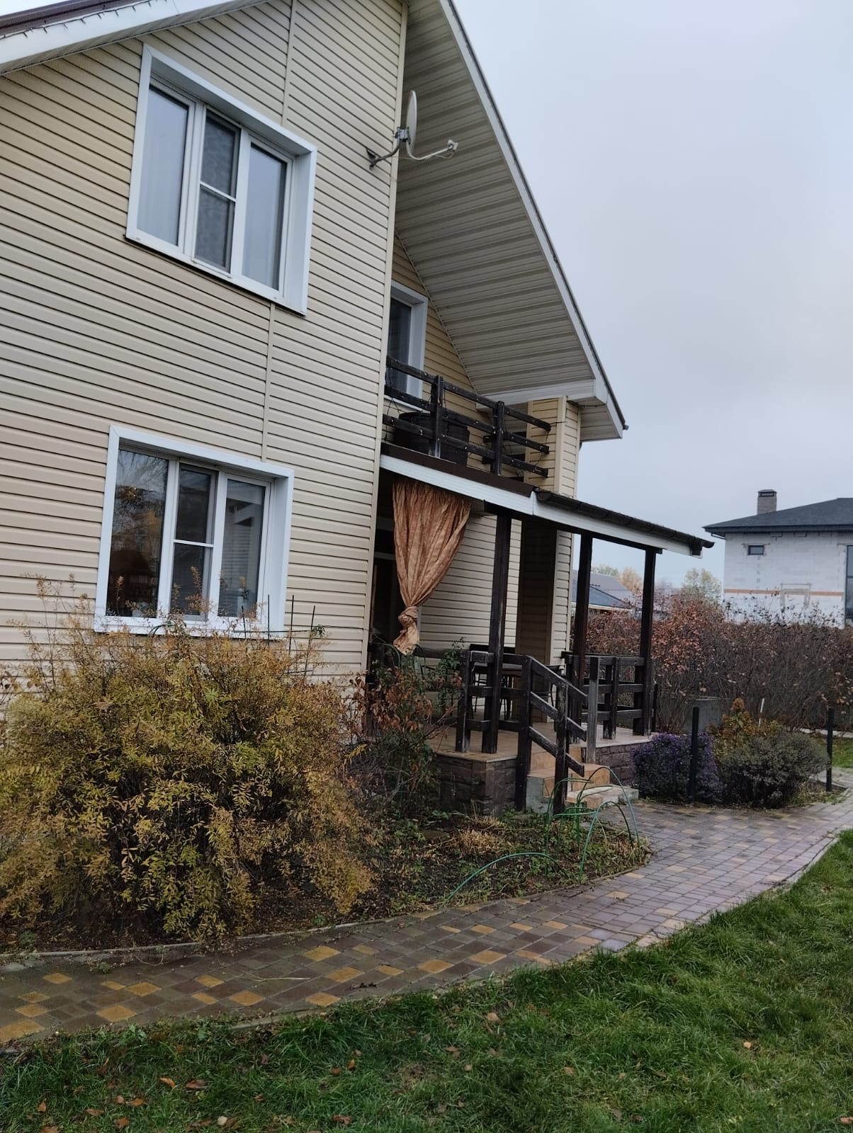 Продаётся 2 этажный дом с 4 спальнями и кабинетом, общей площадью 146 кв.м, жилая 89.5 кв. м., с террасой, отдельно стоящим гаражом и баней, на участке 10 соток.