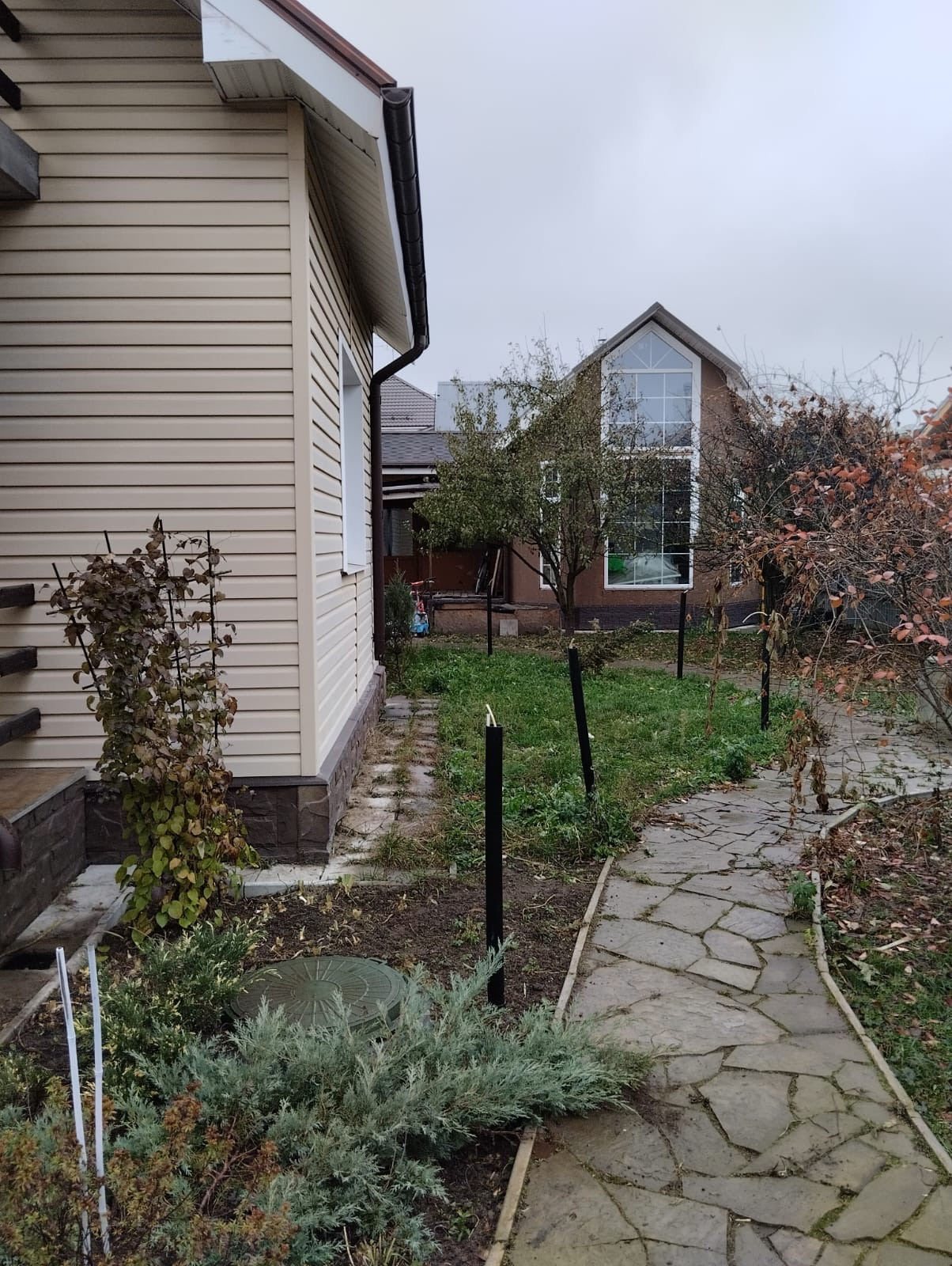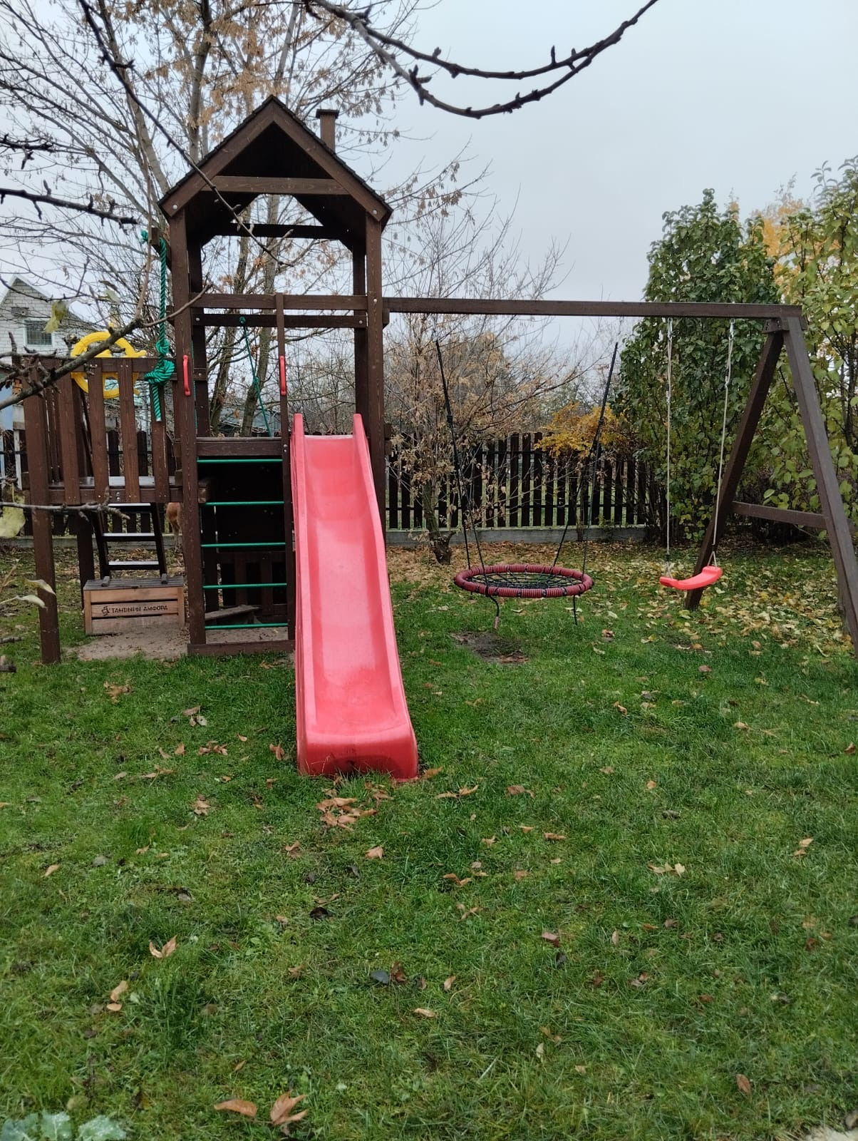 На участке выполнены дренажные и ландшафтные работы. Обустроена детская игровая площадка с песочницей.