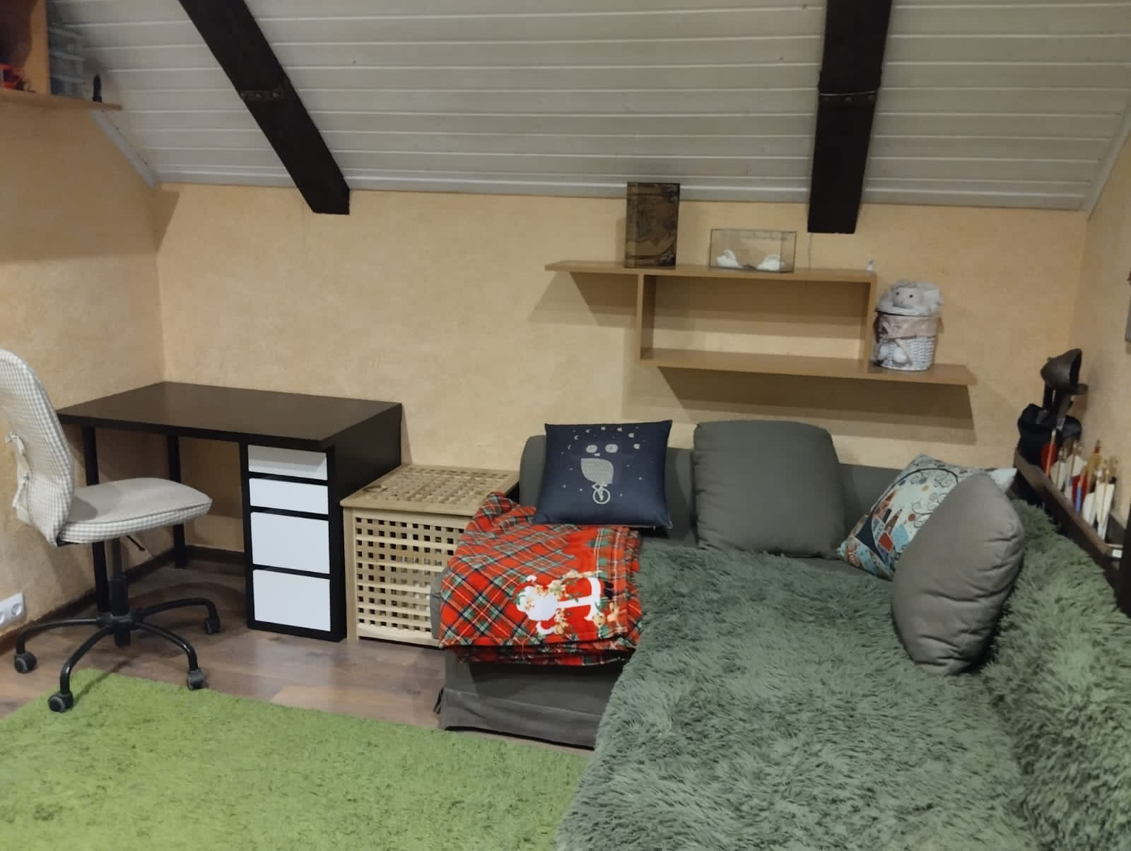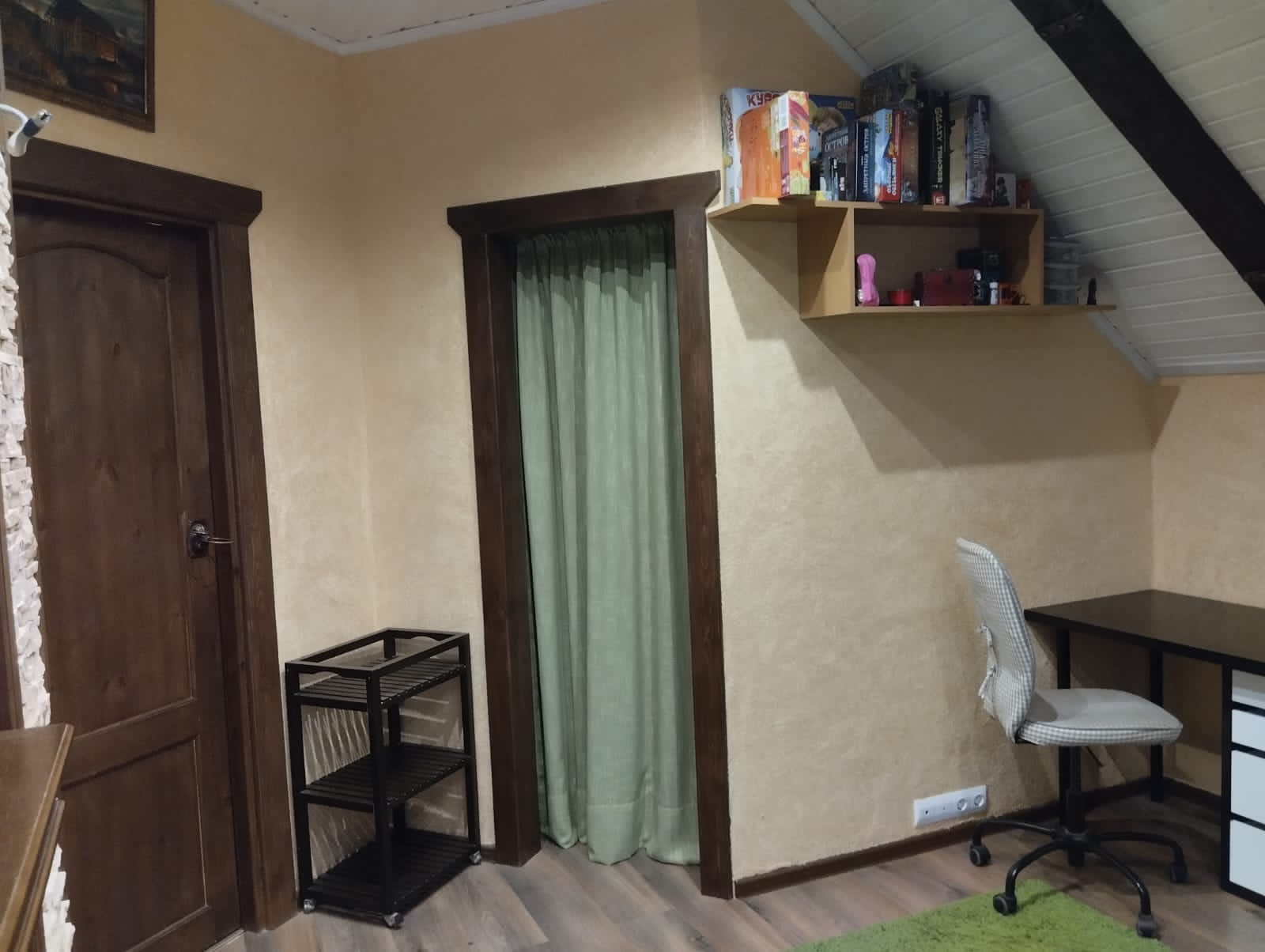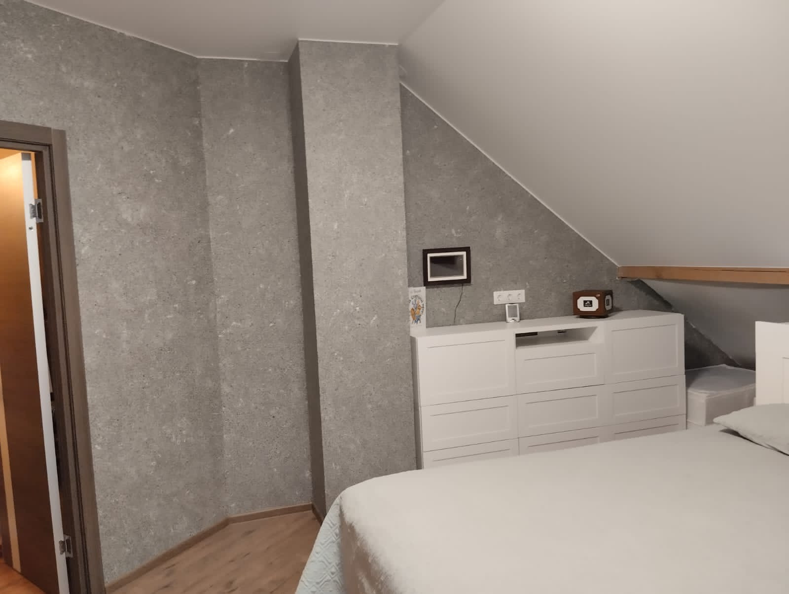 Стены- жидкие обои (100% ремонтопригодность) под покраску.