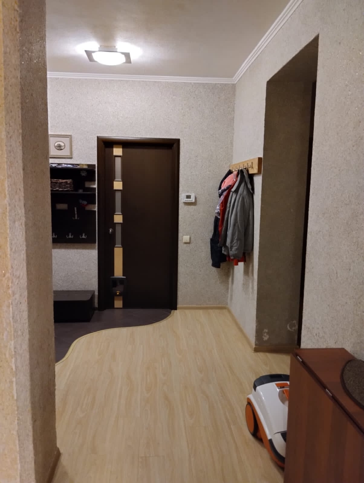 Пол: комната -ламинат. Санузел, прихожая, бойлерная- плитка.