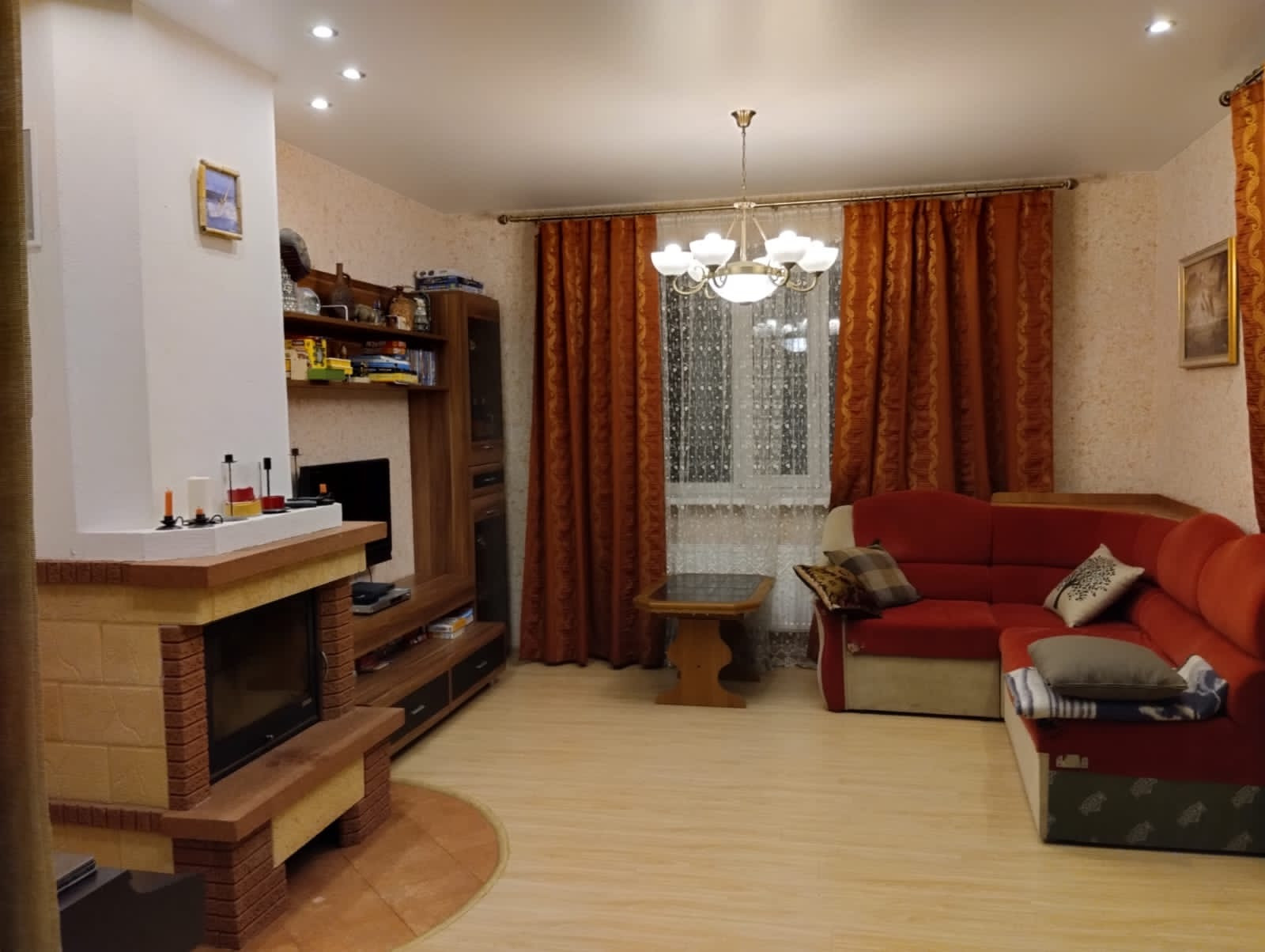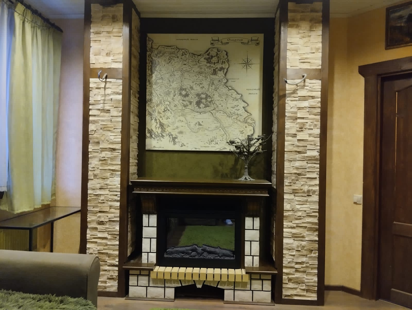 Гостиная с камином и выходом на террасу -20 м., терраса- 12 кв.м.