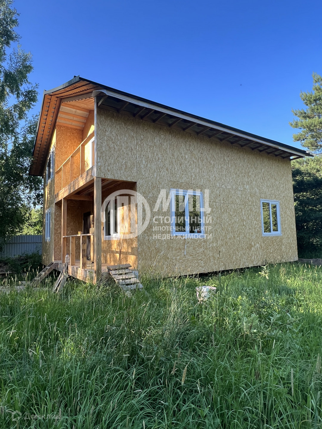 Дом 2-ух этажный каркасный, 2022 года постройки. Фундамент Свайно-винтовой, утеплитель 150. Коммуникации: электричество, газ по границе, колодец.