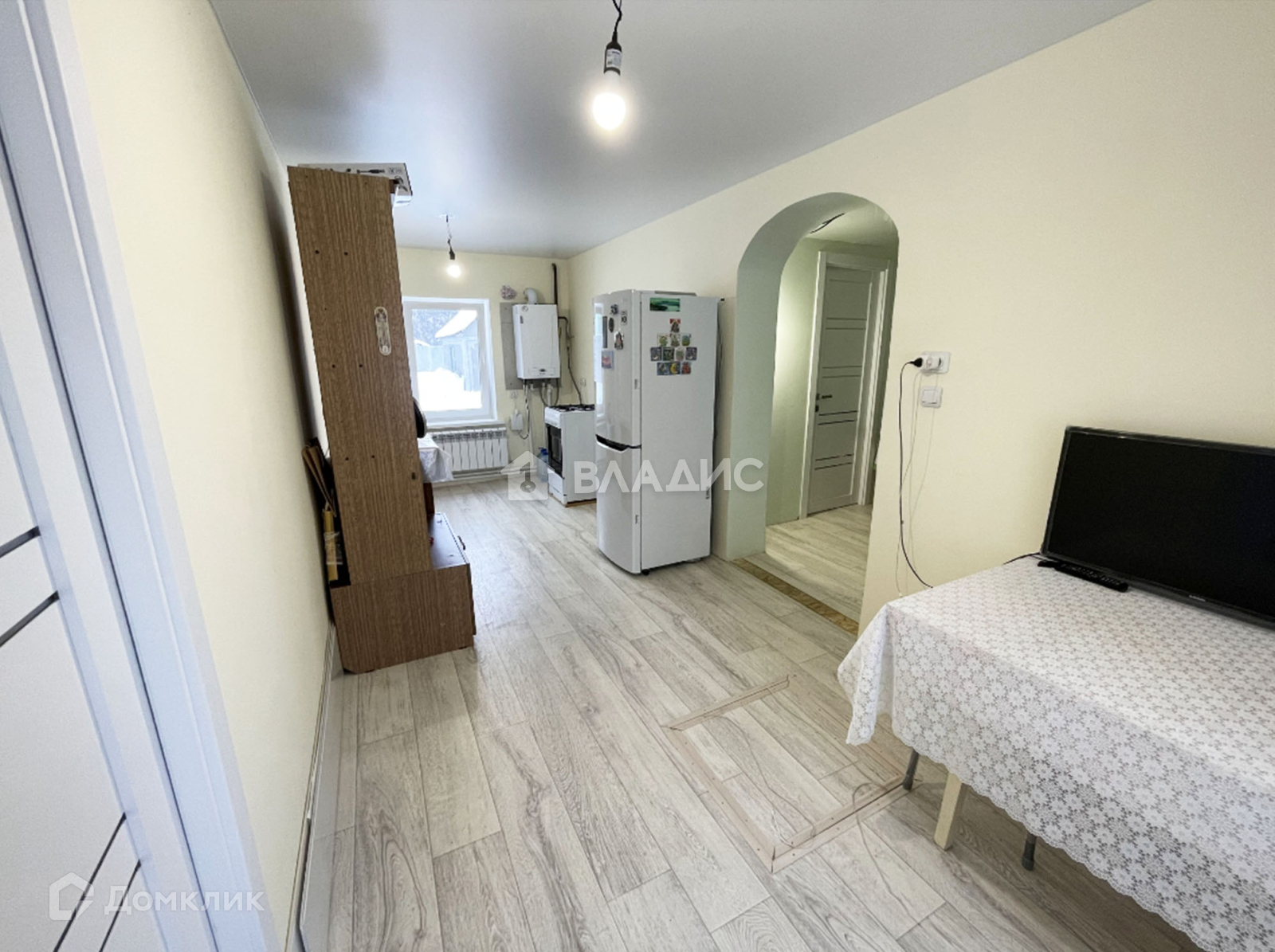 Дом бревенчатый, обложен кирпичом. Есть 2 погреба. Кухня-столовая 14 кв.м, с/у 6.11 кв.м,. две изолированные комнаты: 13 кв.м и 9.2 кв.м.