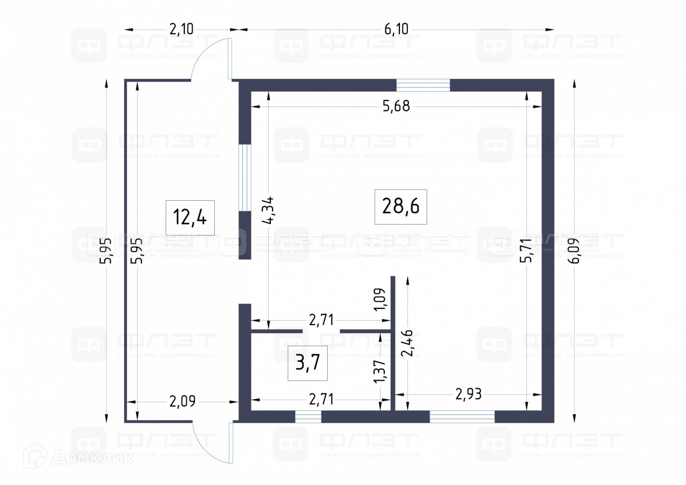 Общая площадь 44.8 м2