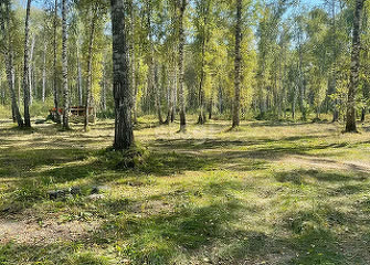 Участок в собственности, вокруг участка строится посёлок, подведён свет со своим ктп на 50 кВт, от дороги 300-500 метров, дорогу не слышно, на участке лес сосны и березы, сделана планировка, есть скважина, дорога оформлена документально.