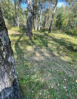 Участок в собственности, вокруг участка строится посёлок, подведён свет со своим ктп на 50 кВт, от дороги 300-500 метров, дорогу не слышно, на участке лес сосны и березы, сделана планировка, есть скважина, дорога оформлена документально.