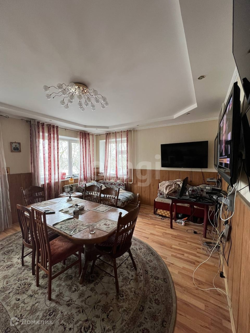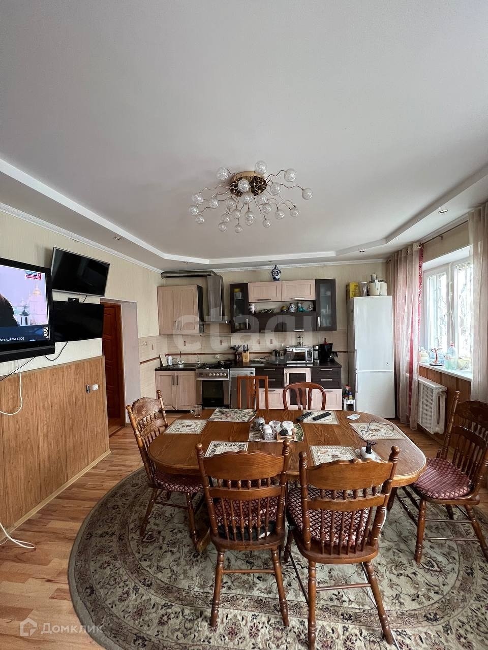 В доме мебель, бытовая техника, телевизоры. Часть мебели можем оставить.
