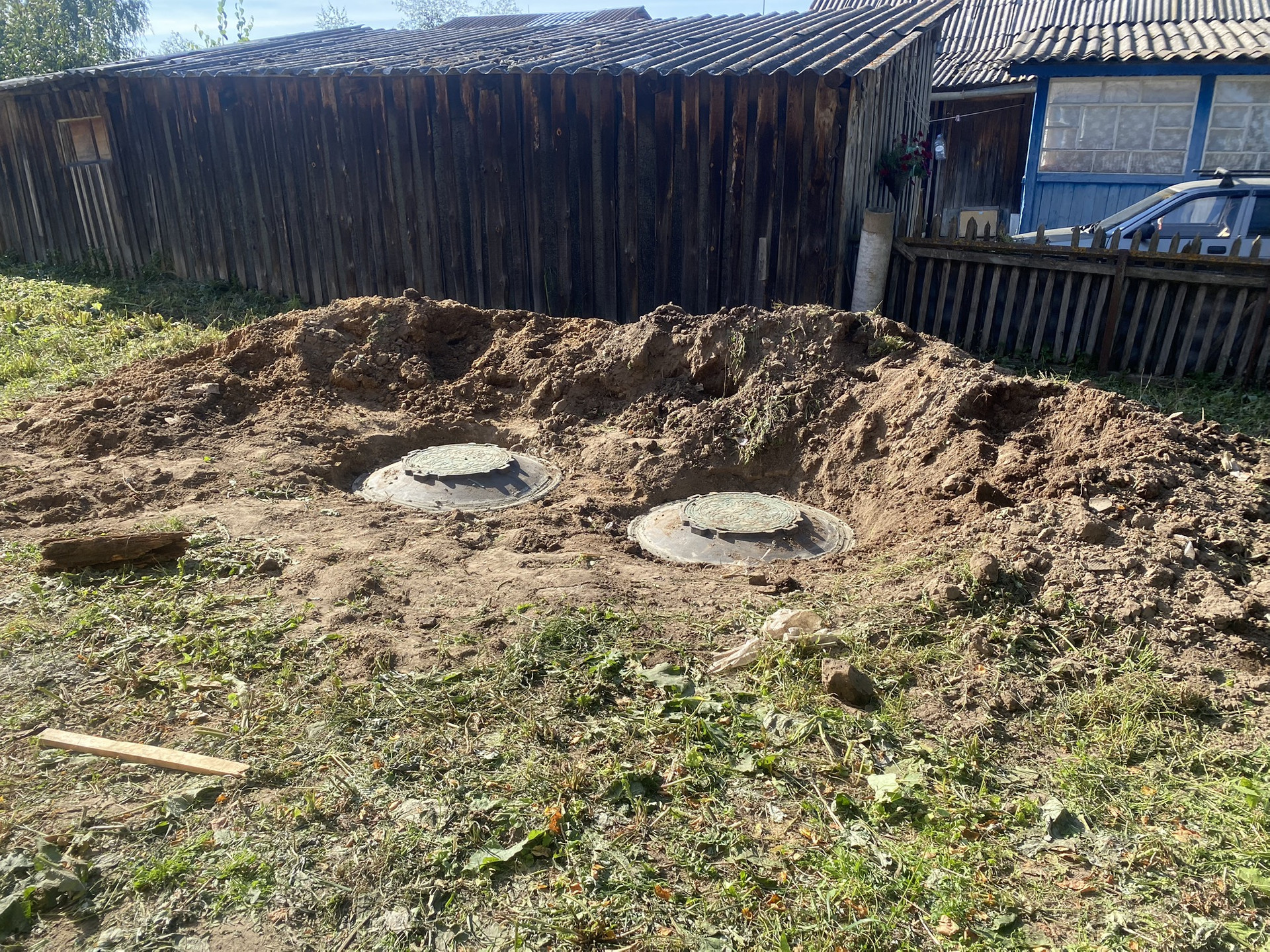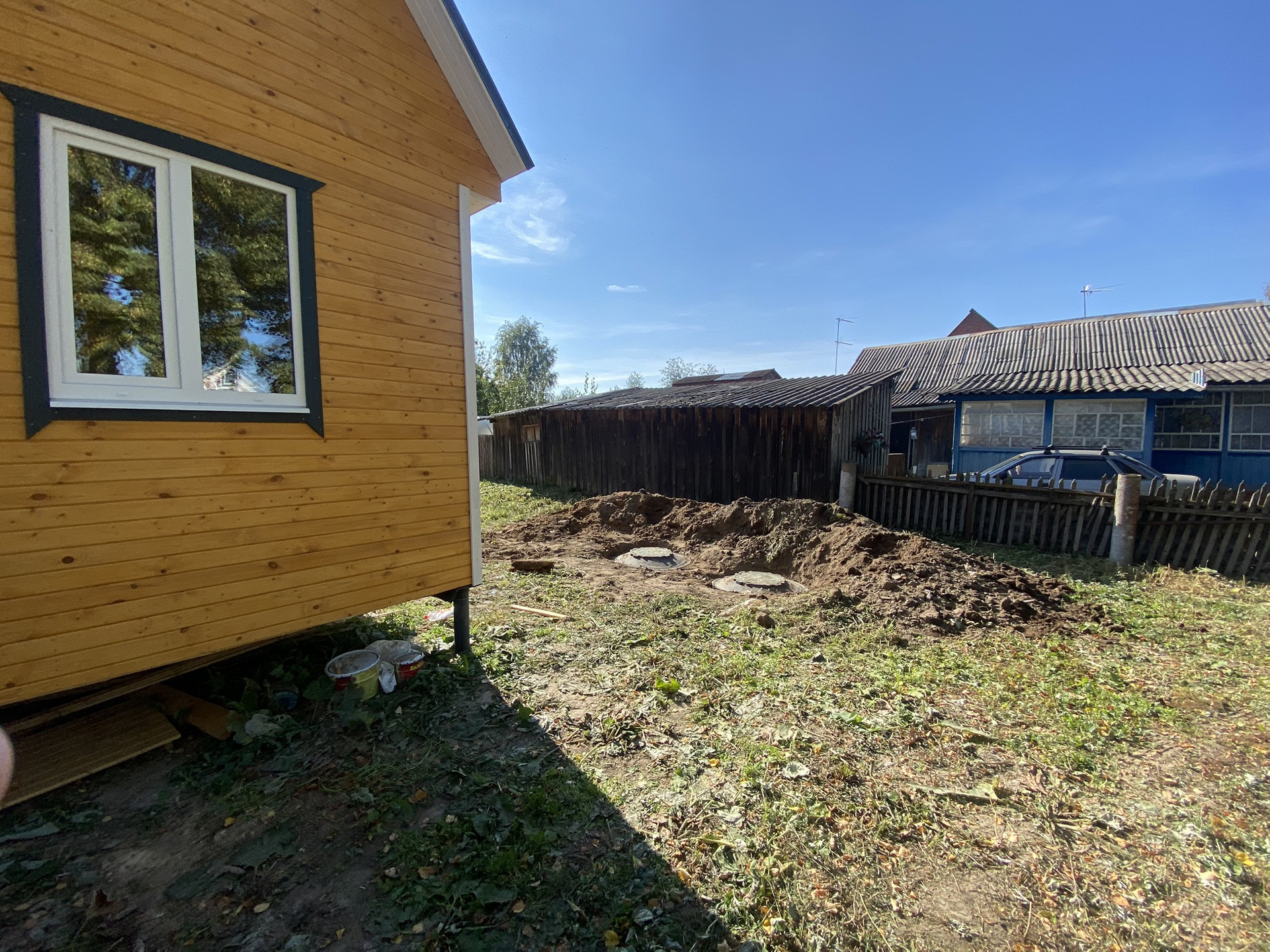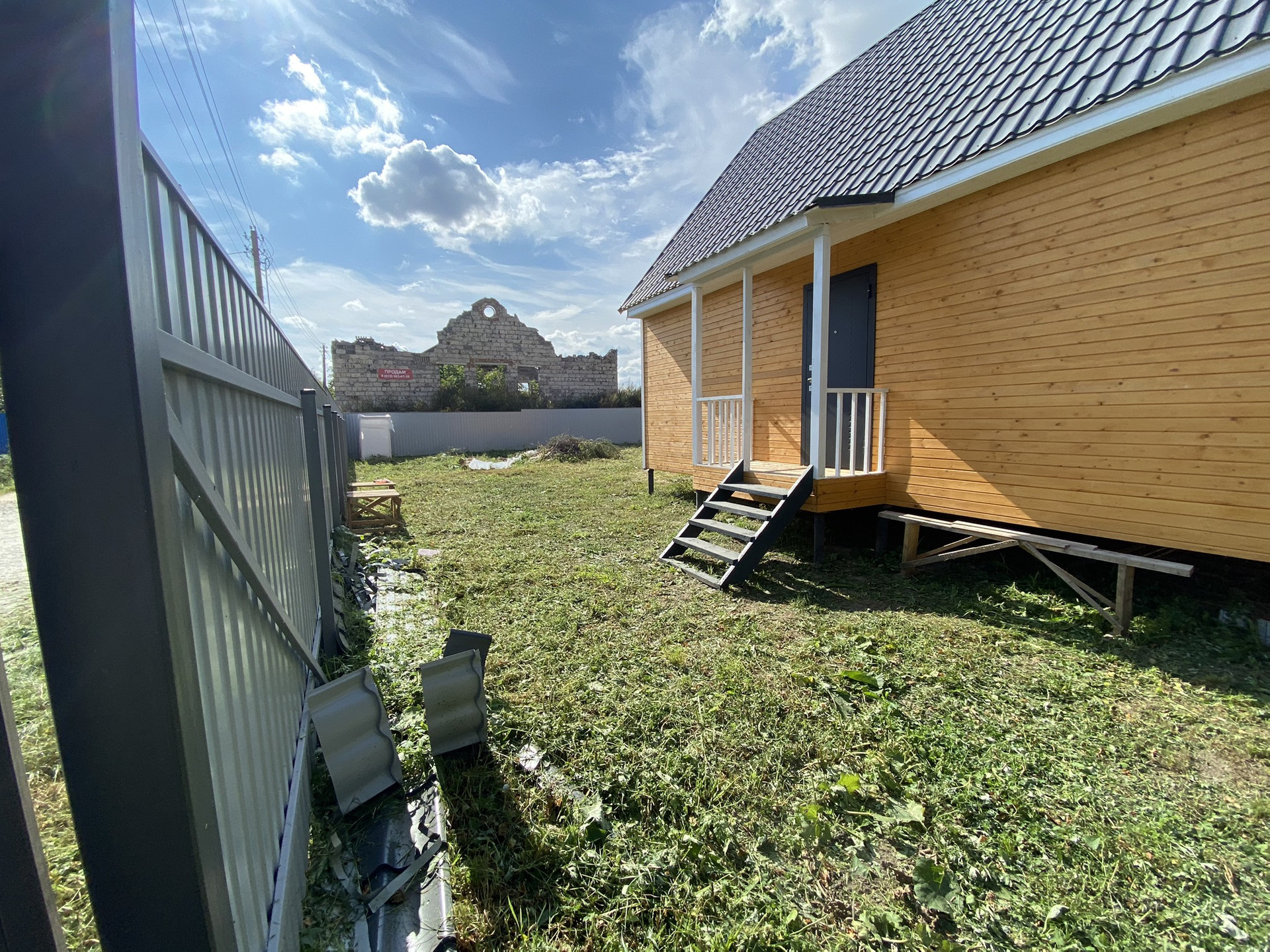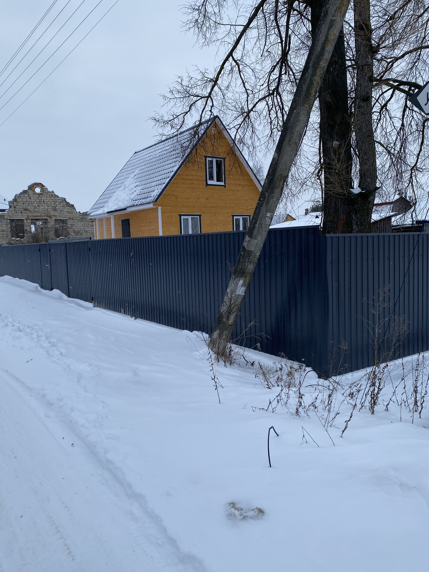 Участок огорожен забором с калиткой и воротами