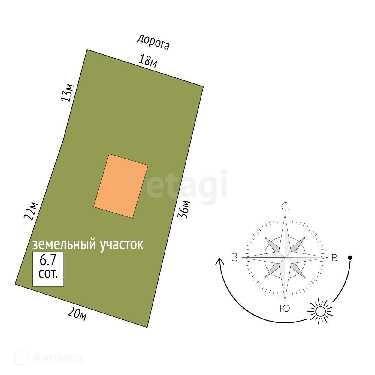 Площадь участка 6.7 сот.