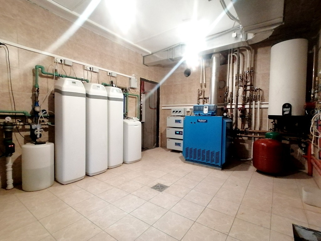 Полное инженерное обеспечение: электричество, магистральный газ, водоснабжение от глубоководной скважины, центральная канализация, дренажная система. Разведены системы отопления и вентиляции. Установлен резервный электрогенератор.