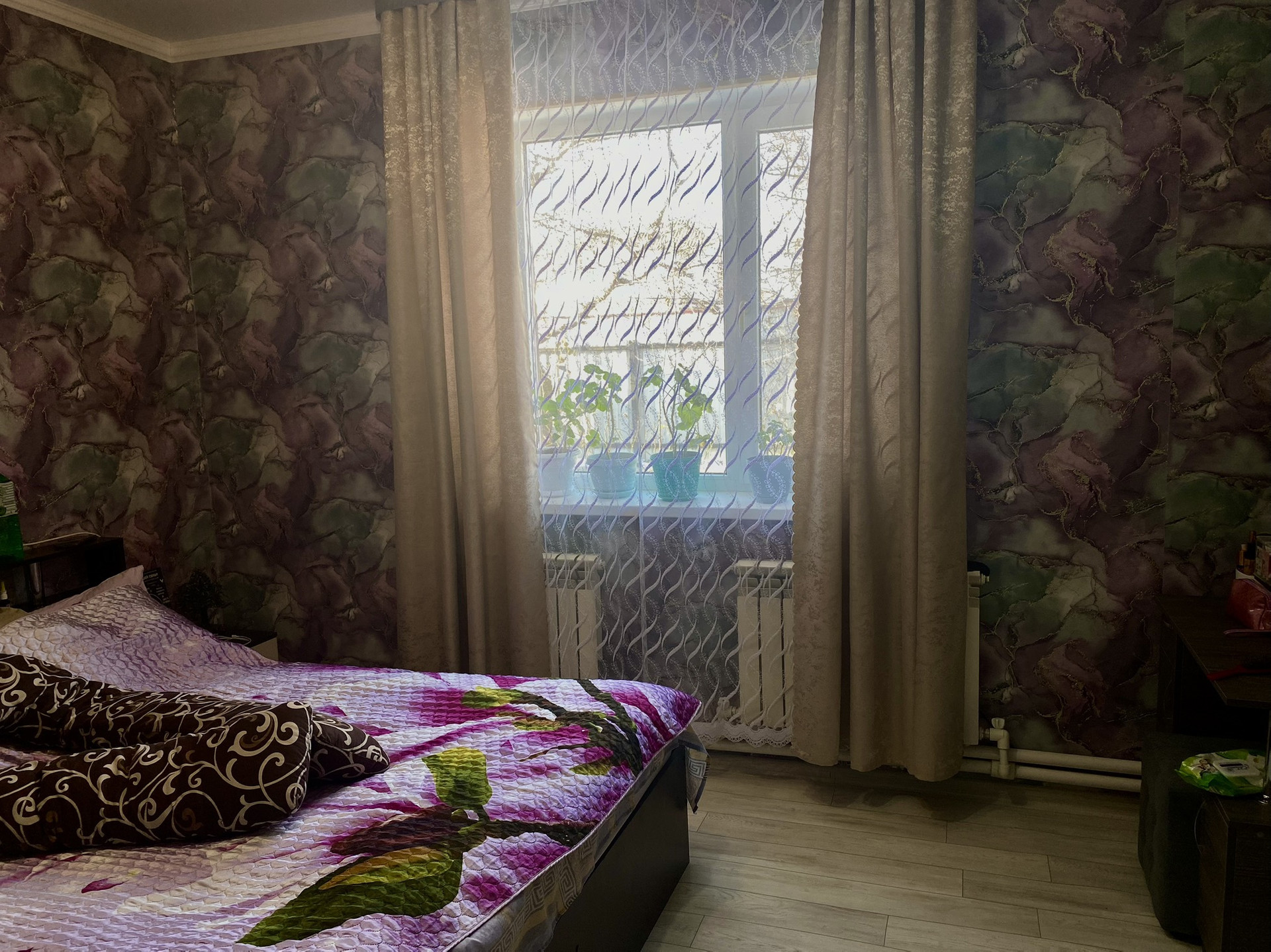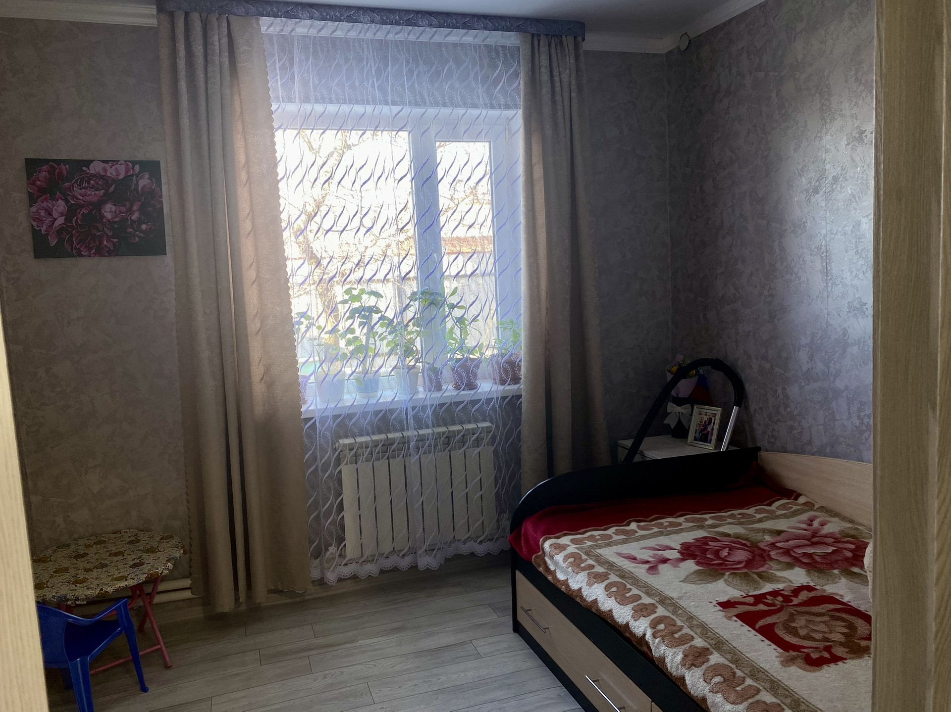 В доме 4 просторные жилые комнаты. Сделан свежий капитальный ремонт. Своя скважина водоснабжения, газовое отопление, телевидение и вай-фай в доме проведены. Двор благоустроен: 2 навеса, имеются хоз-постройки. Большой участок для огорода.