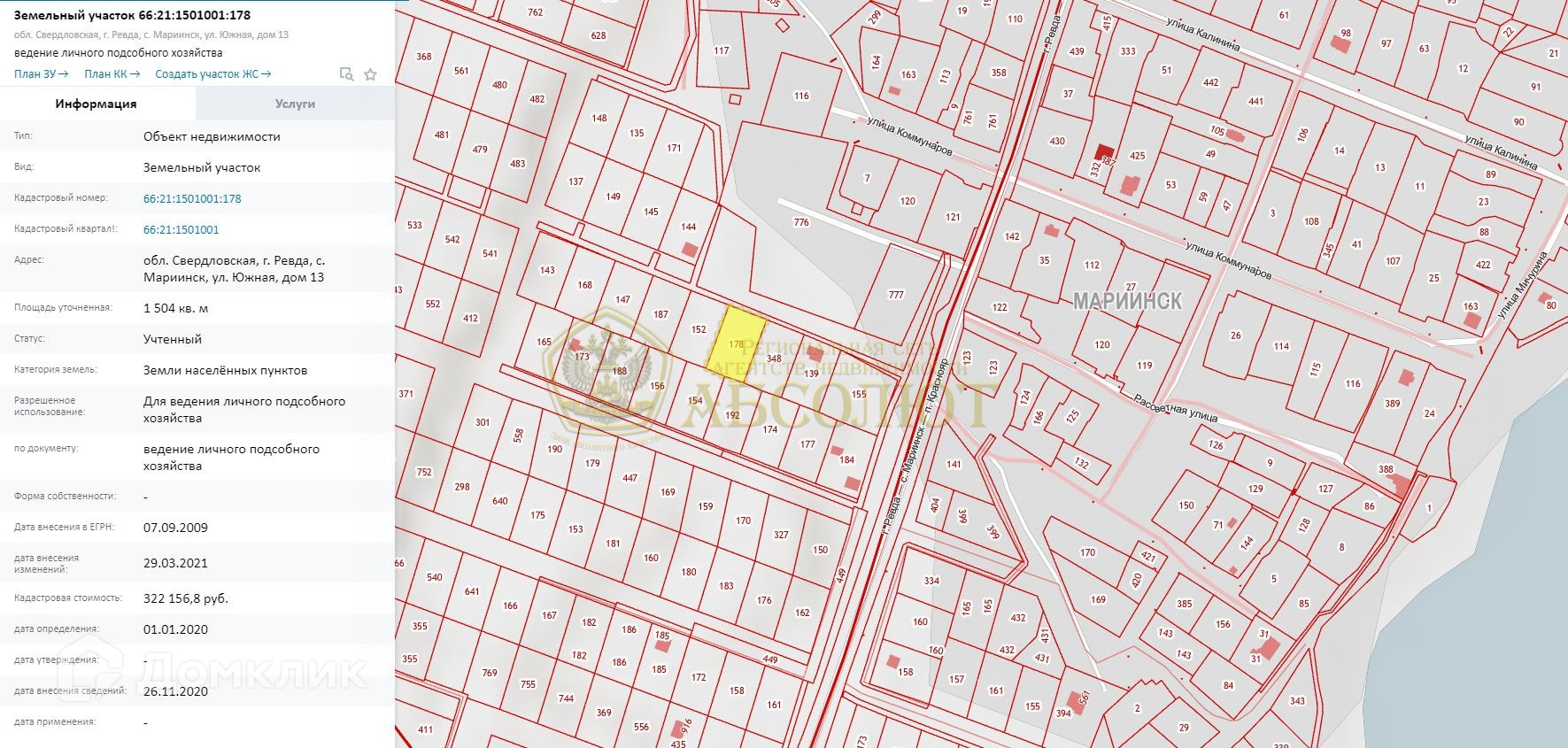 Арт. 22928410 Единственное предложение, то, о чем мечтают, лучшие условия, смотрите сегодня, завтра можете не успеть! Продам земельный участок 15 соток под строительство дома своей мечты, удобное расположение участка, рядом идет активная застройка. Электричество 220 В + 380 В. Разрешенное использование земли ЛПХ. Земельный участок в собственности, отмежеван. Категория земель: земли населенных пунктов. п. Мариинск ул. Южная, 13 за школой. Кадастровый номер 66:21:1501001:178. Если Вам понравился наш вариант, а на покупку не хватает средств, то мы согласуем для Вас ипотеку дешевле, чем в банке, за счет  партнерской программы. Наш ипотечный центр оказывает помощь в одобрении с любой кредитной историей!