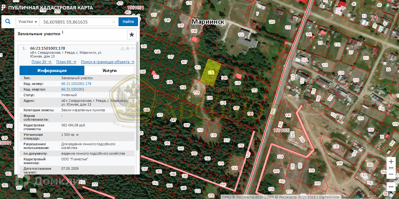 Кадастровый номер 66:21:1501001:178.