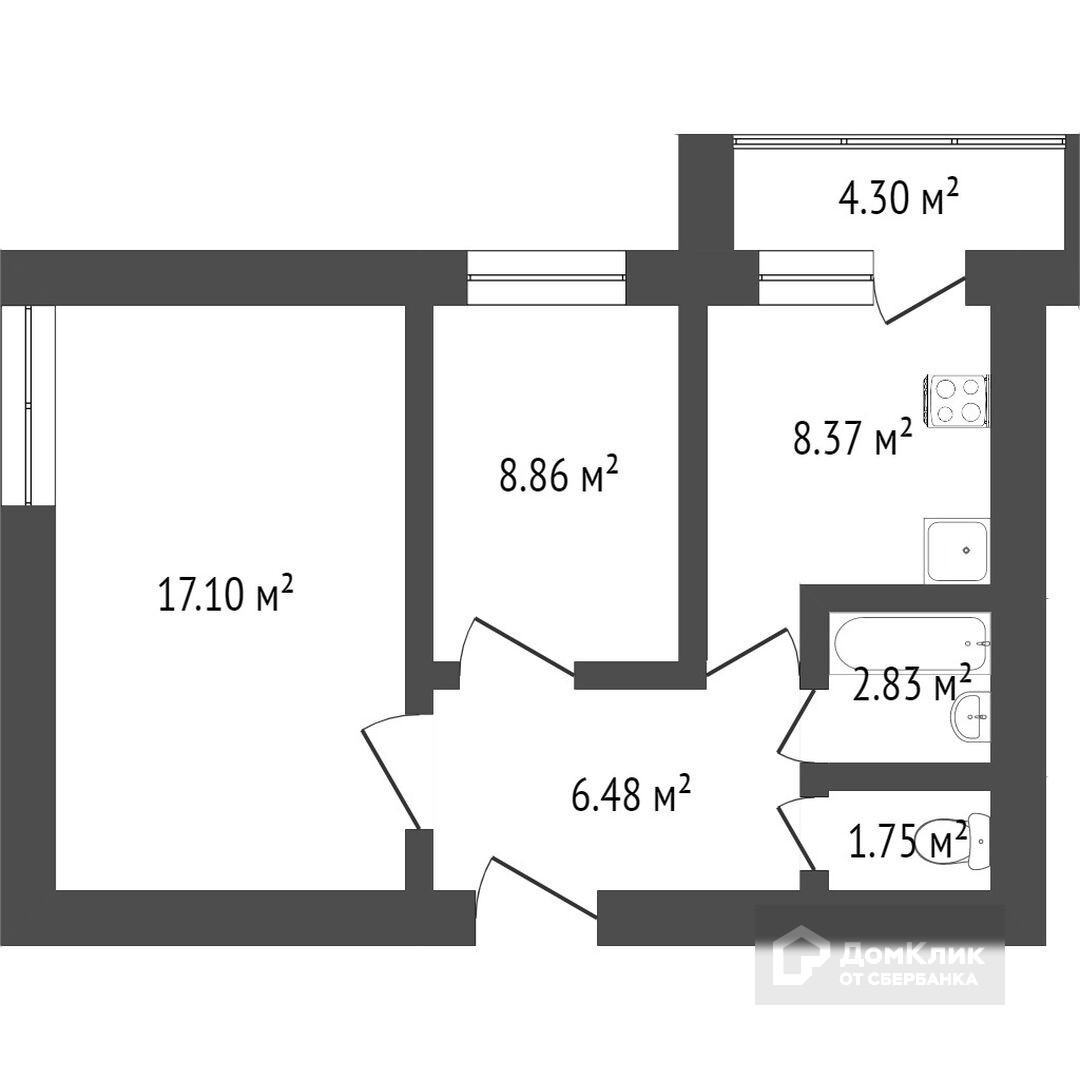 Общая площадь 45.6 м2