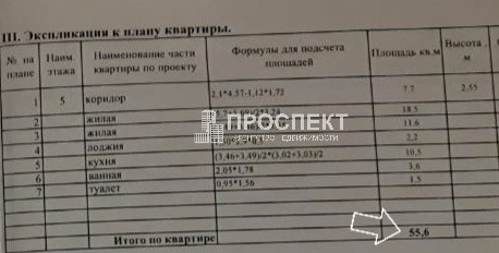 Общая площадь 53.4 м2