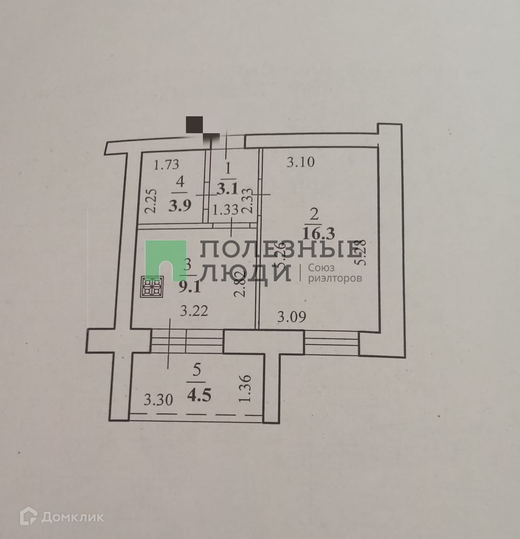 Жилая площадь 16.3 м2