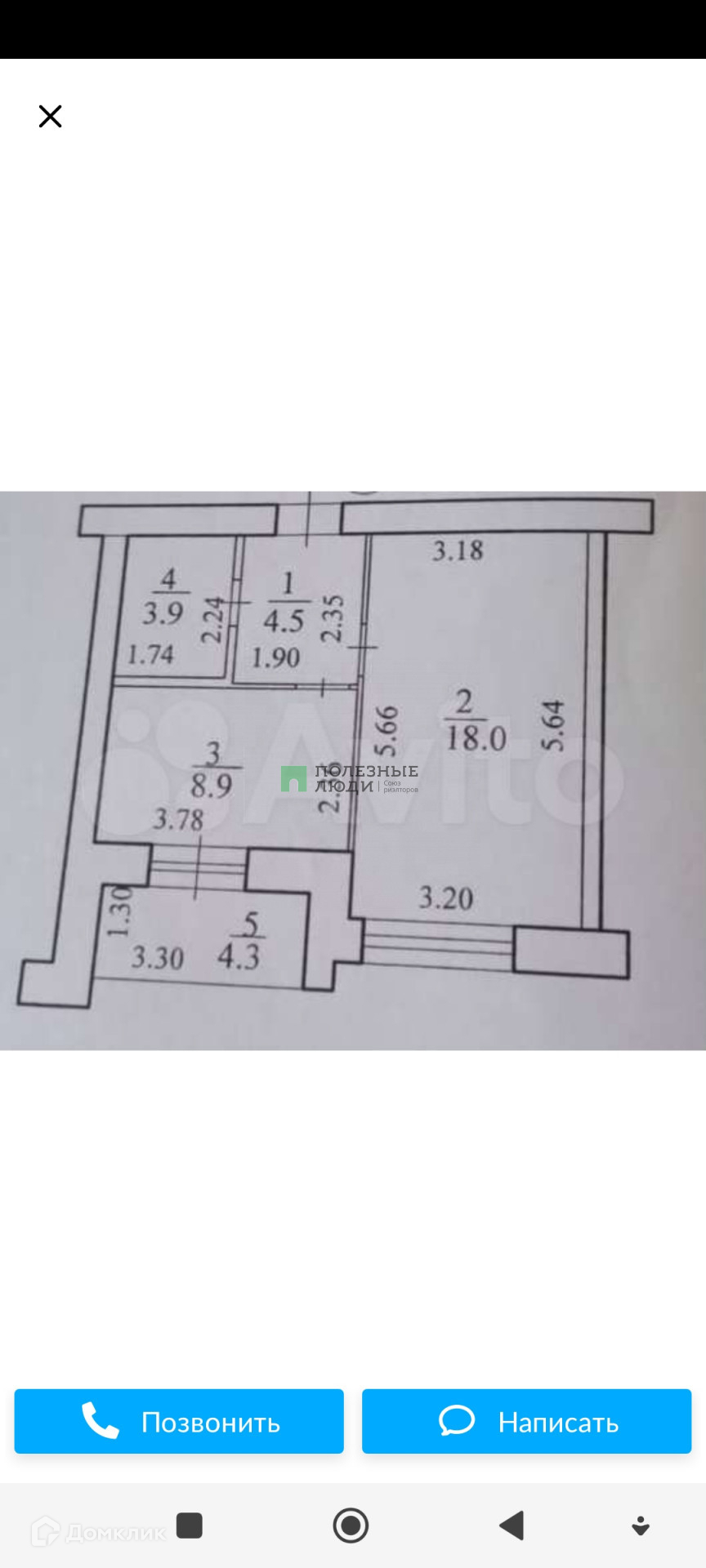 Общая площадь 36 м2