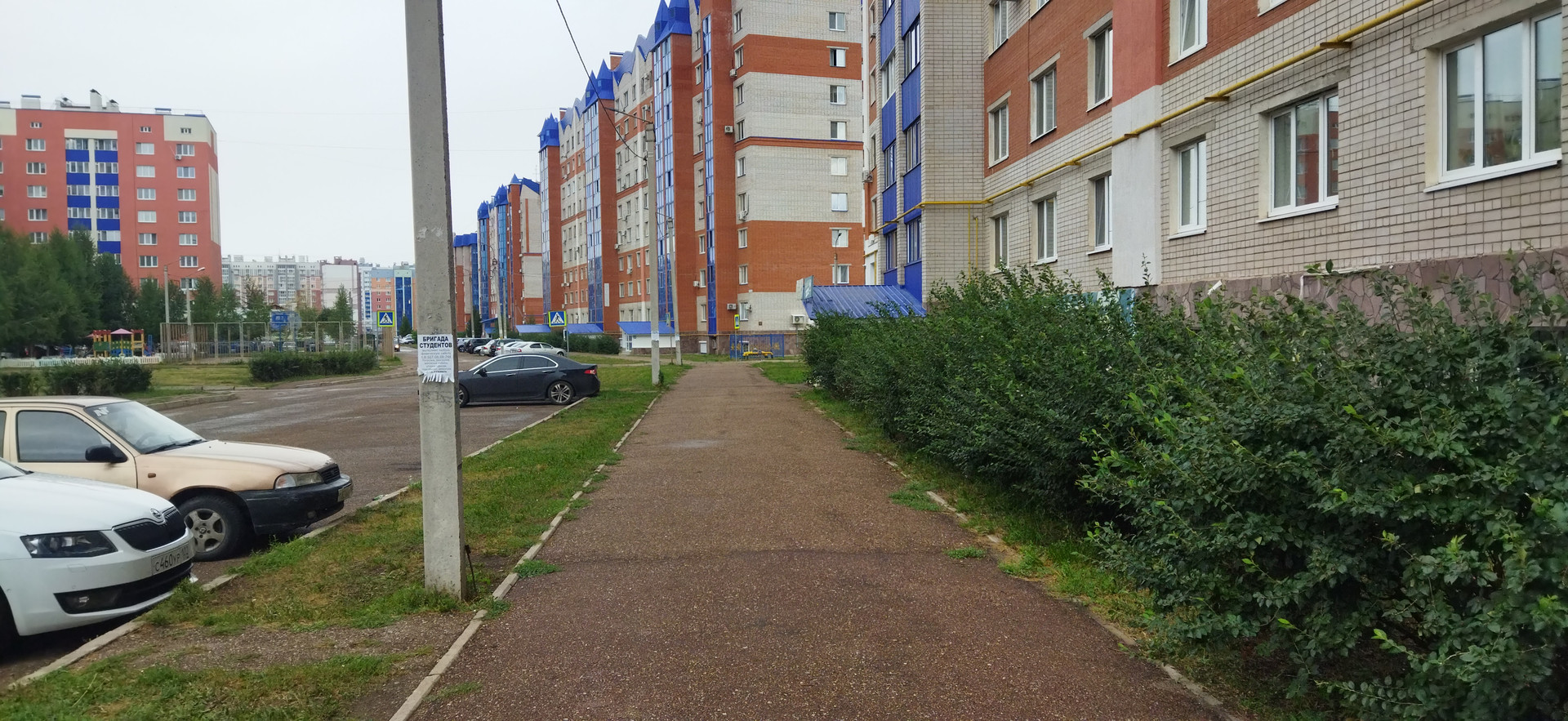 Современный развитый район, новый кирпичный дом.
