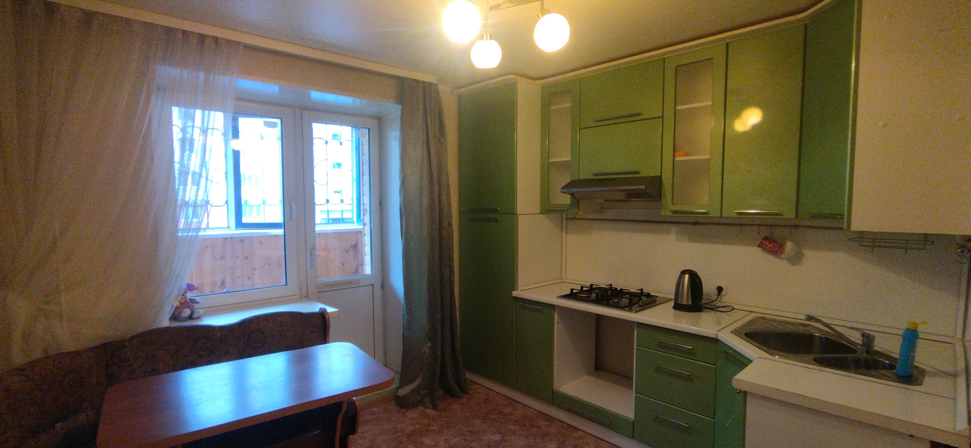 Отличный кухонный гарнитур. Просторная лоджия из кухни. Большой тамбур.