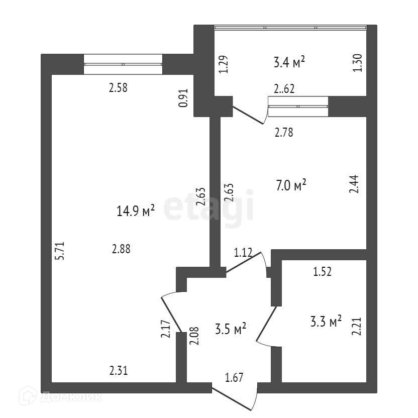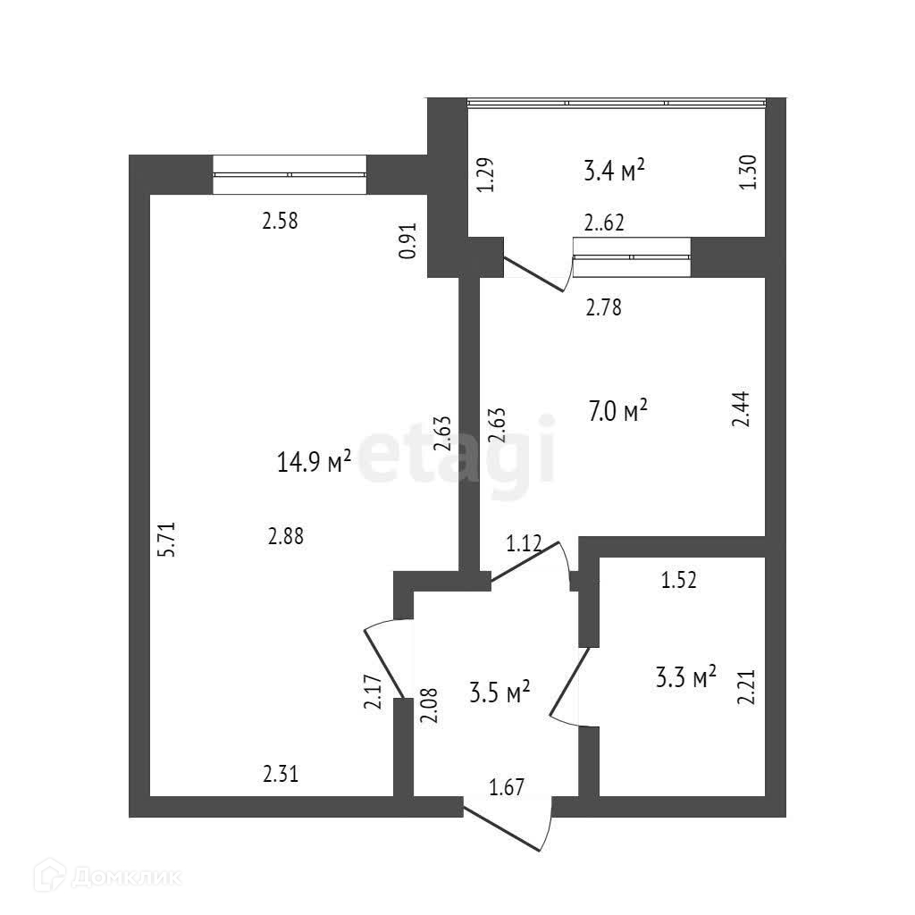 Общая площадь 28.7 м2