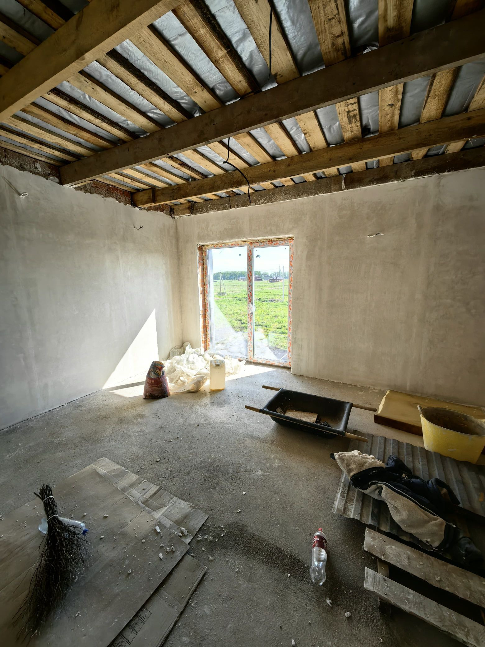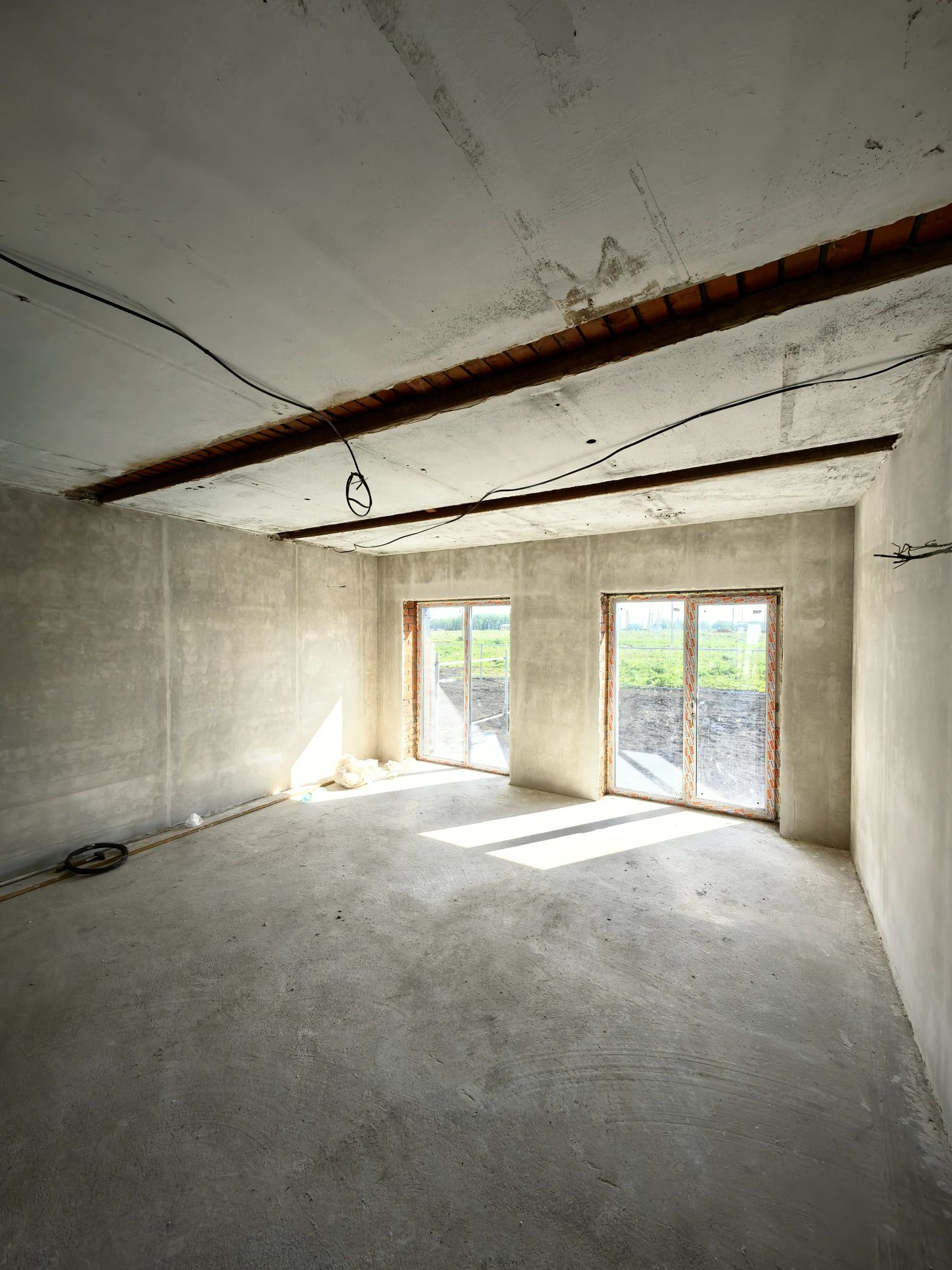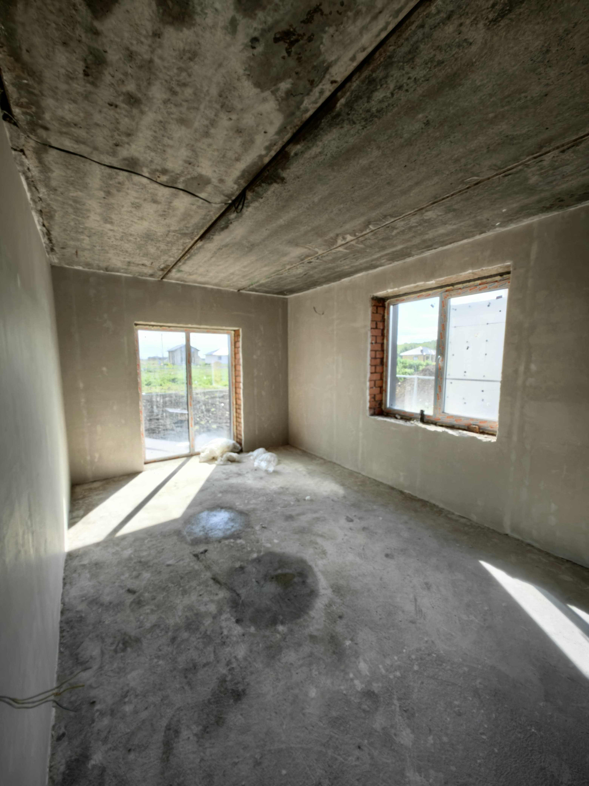 - отделка предчистовая: входная дверь, пластиковые окна, оштукатуренные белые стены, полусухая стяжка пола с системой тёплого пола на обоих этажах, ;