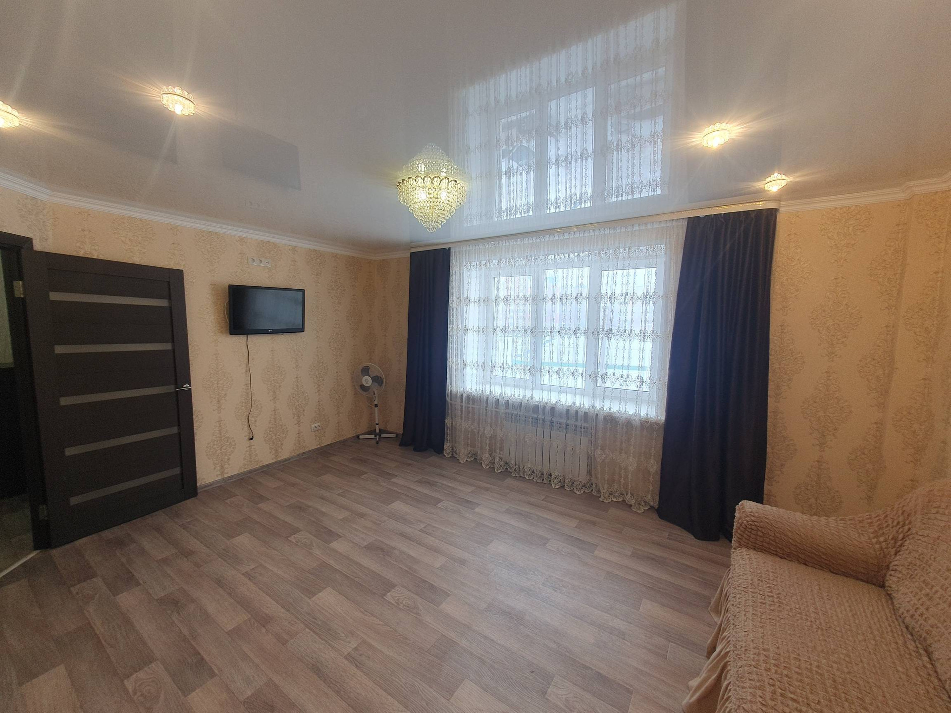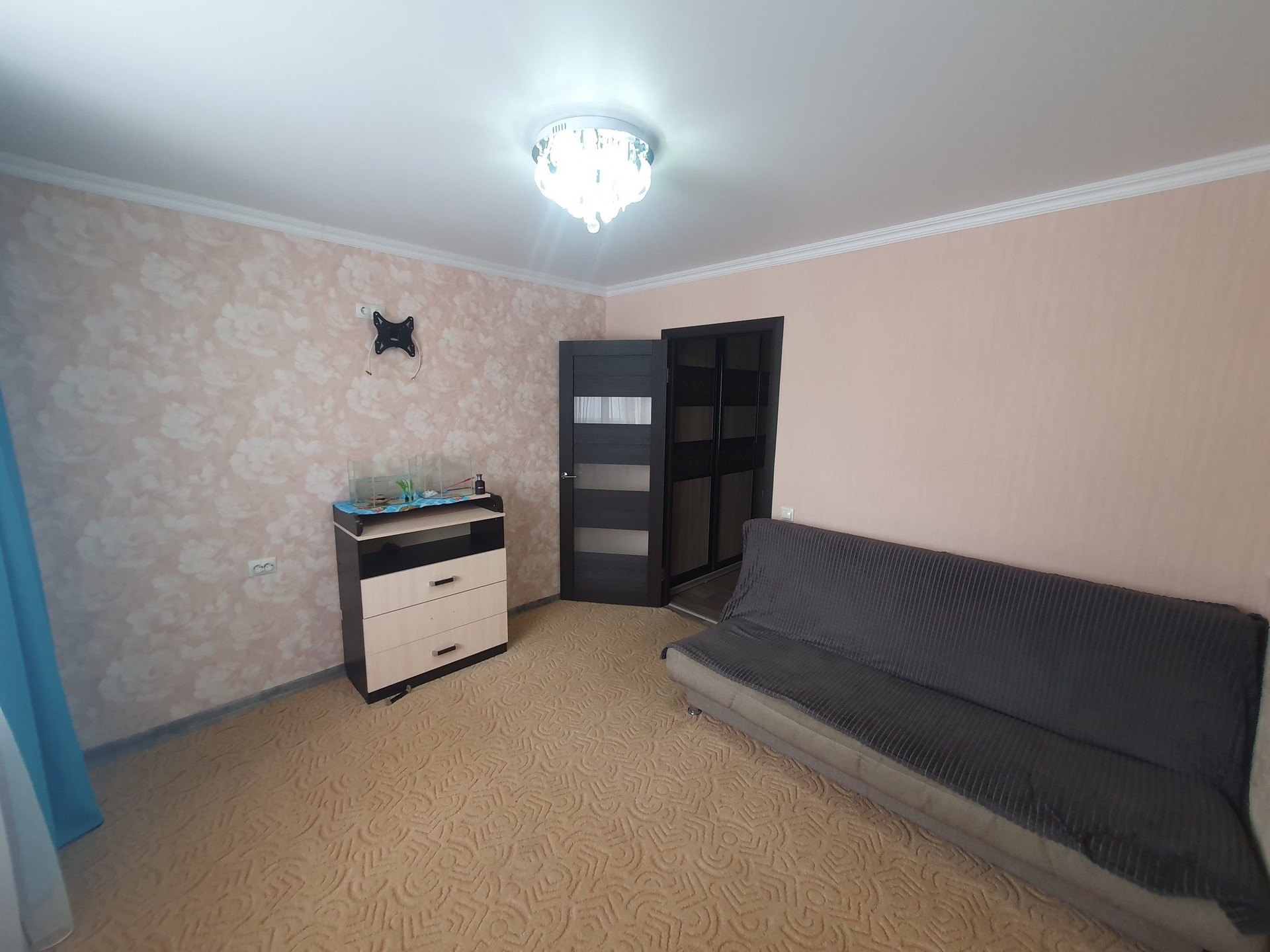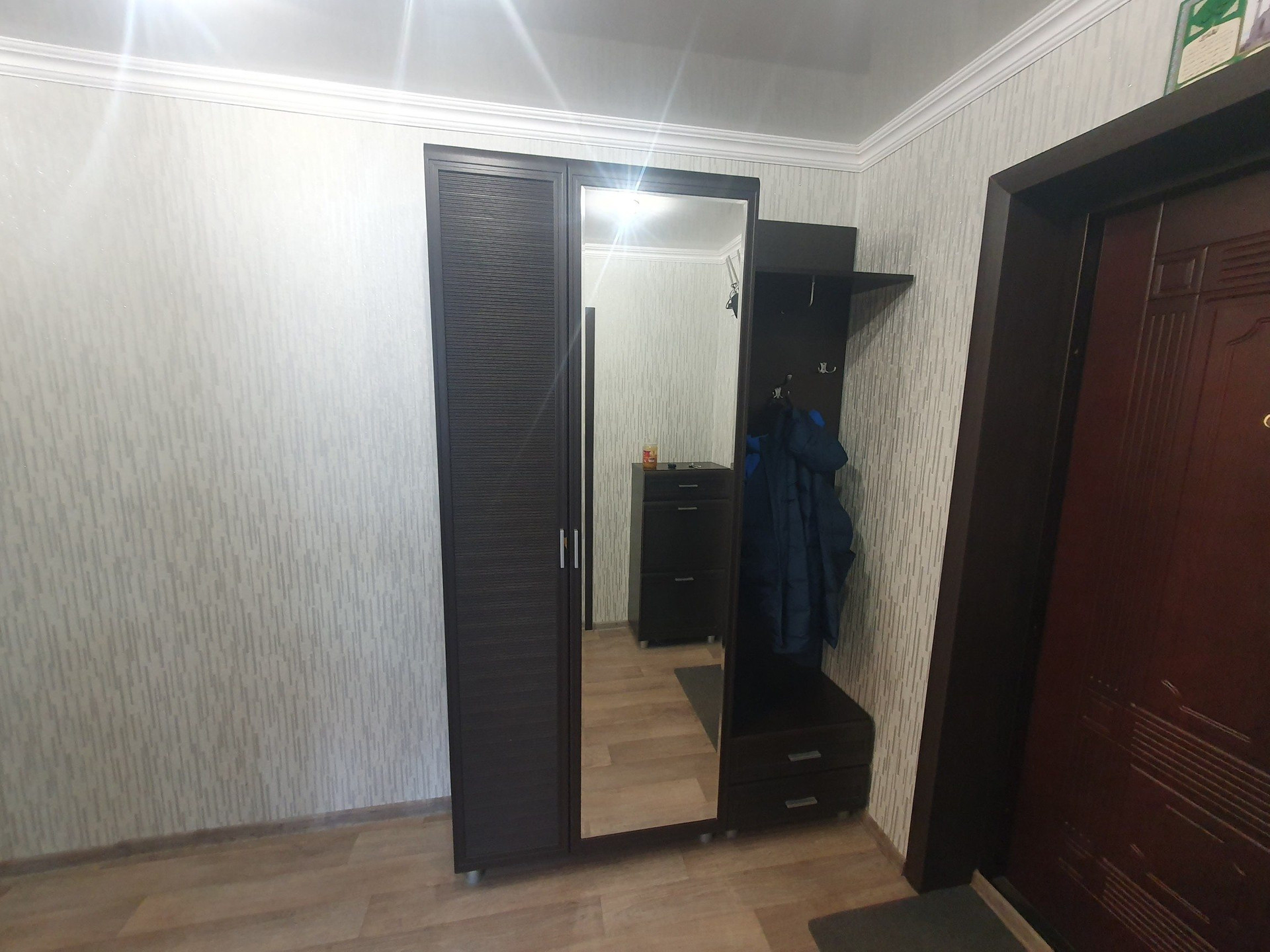 - Кухонный гарнитур с плитой, холодильник, стиральная машина, посудомоечная машина, 2 спальных места, телевизор, чайник электрический, большой встроенный шкаф в коридоре, прихожая.