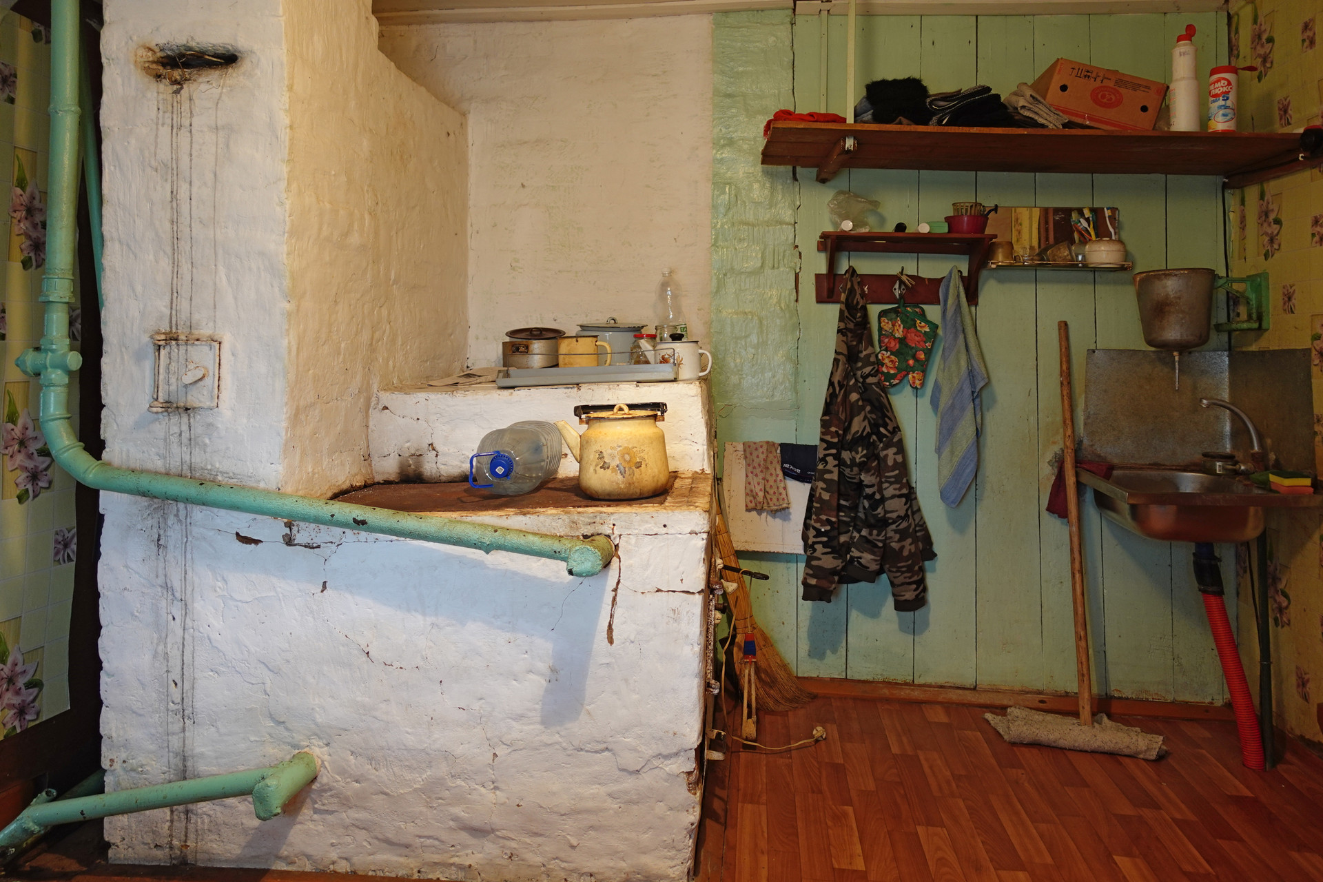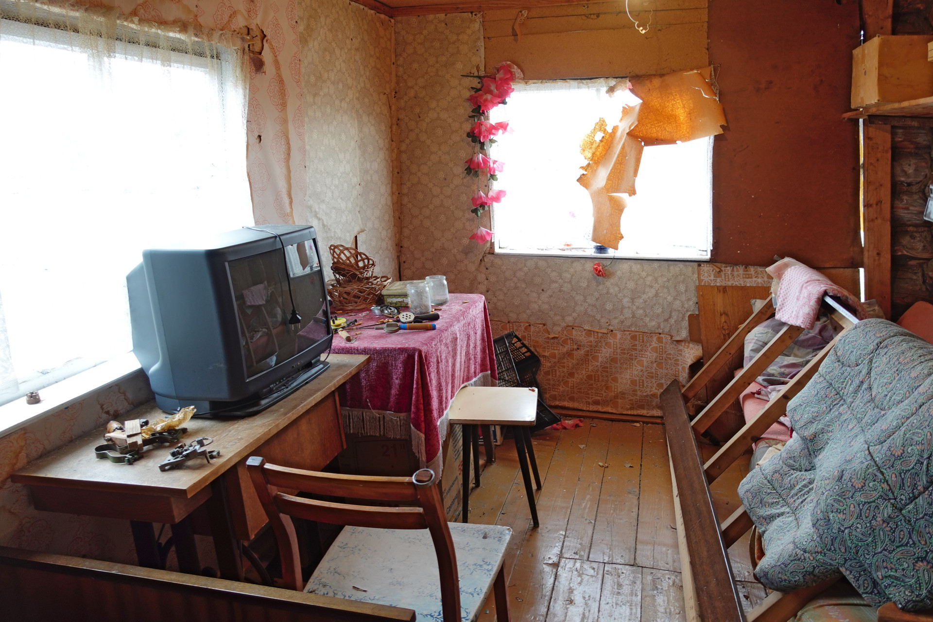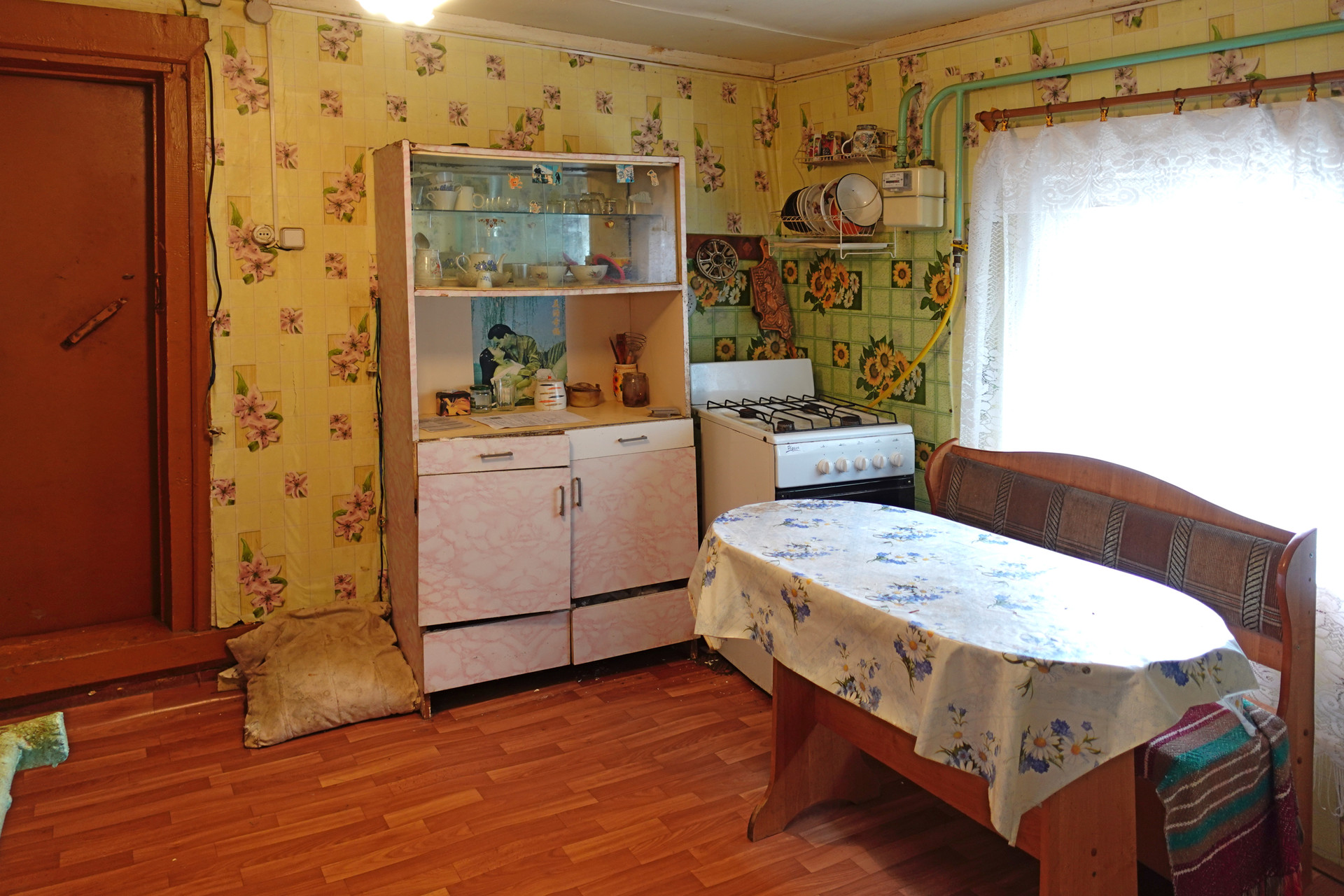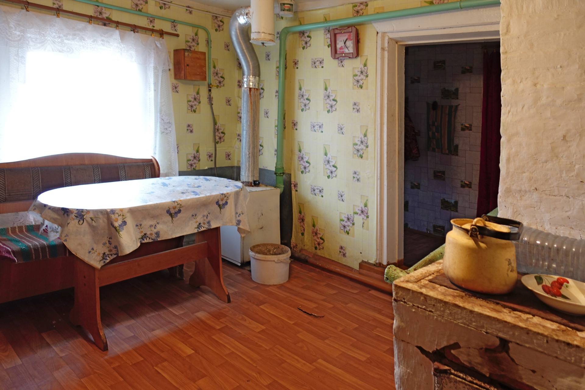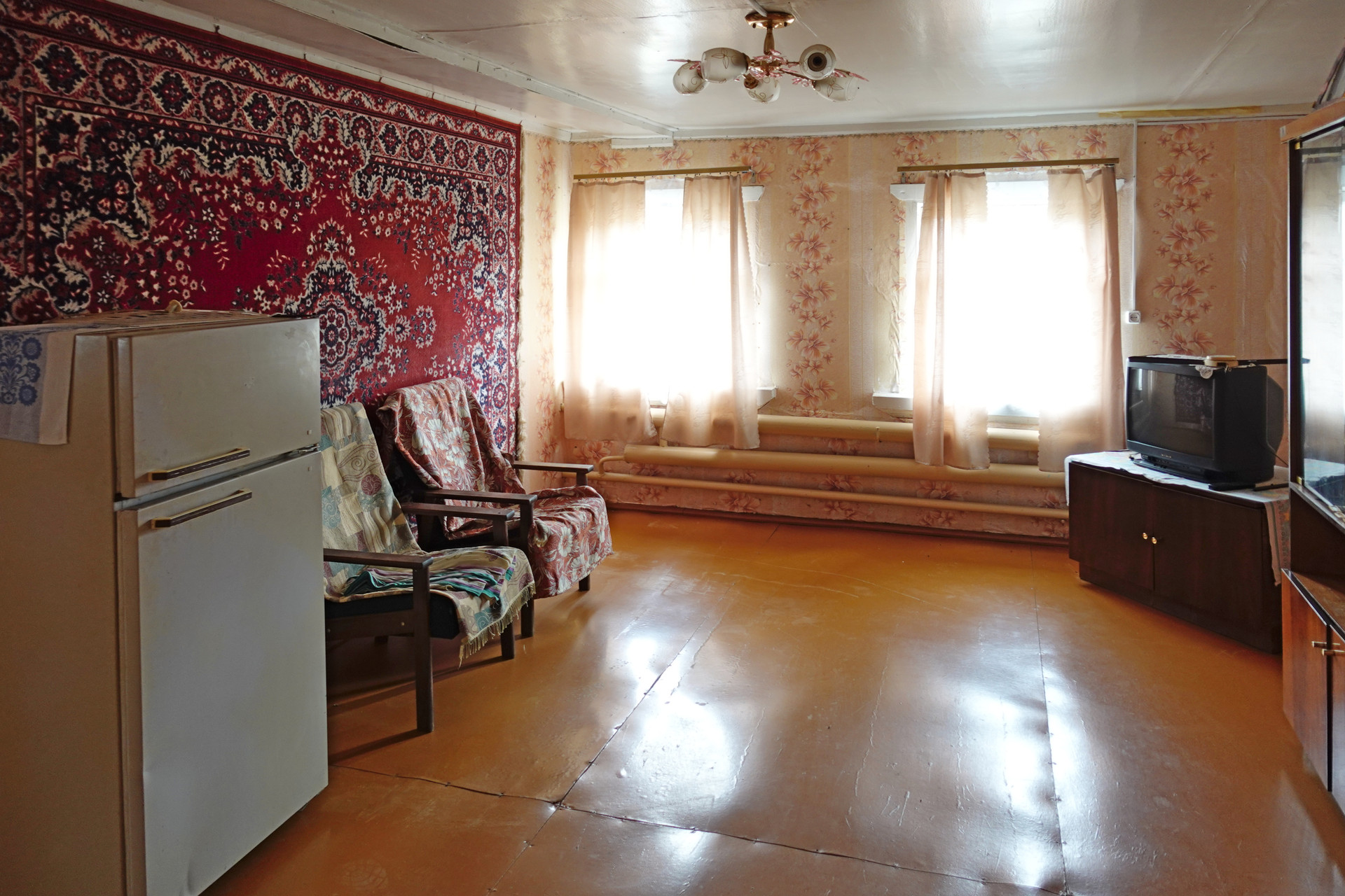Бревенчатый сруб поставлен на кирпичную ленту, общей площадью 51 квадратный метр. Кровля дома из шифера, окна деревянные. В доме установлен газовый котел и дровяная печь, что обеспечивает эффективное и энергонезависимое отопление. Вода подведена от местной водонапорной башни, оборудован слив воды на улицу. Туалет ямного типа в хозяйственной части дома.