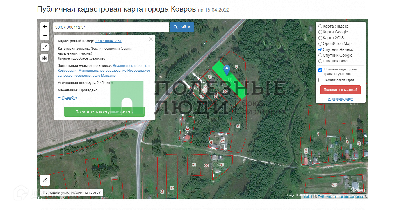 Кад.номер: 33:07:000412:51 Межевание проведено.