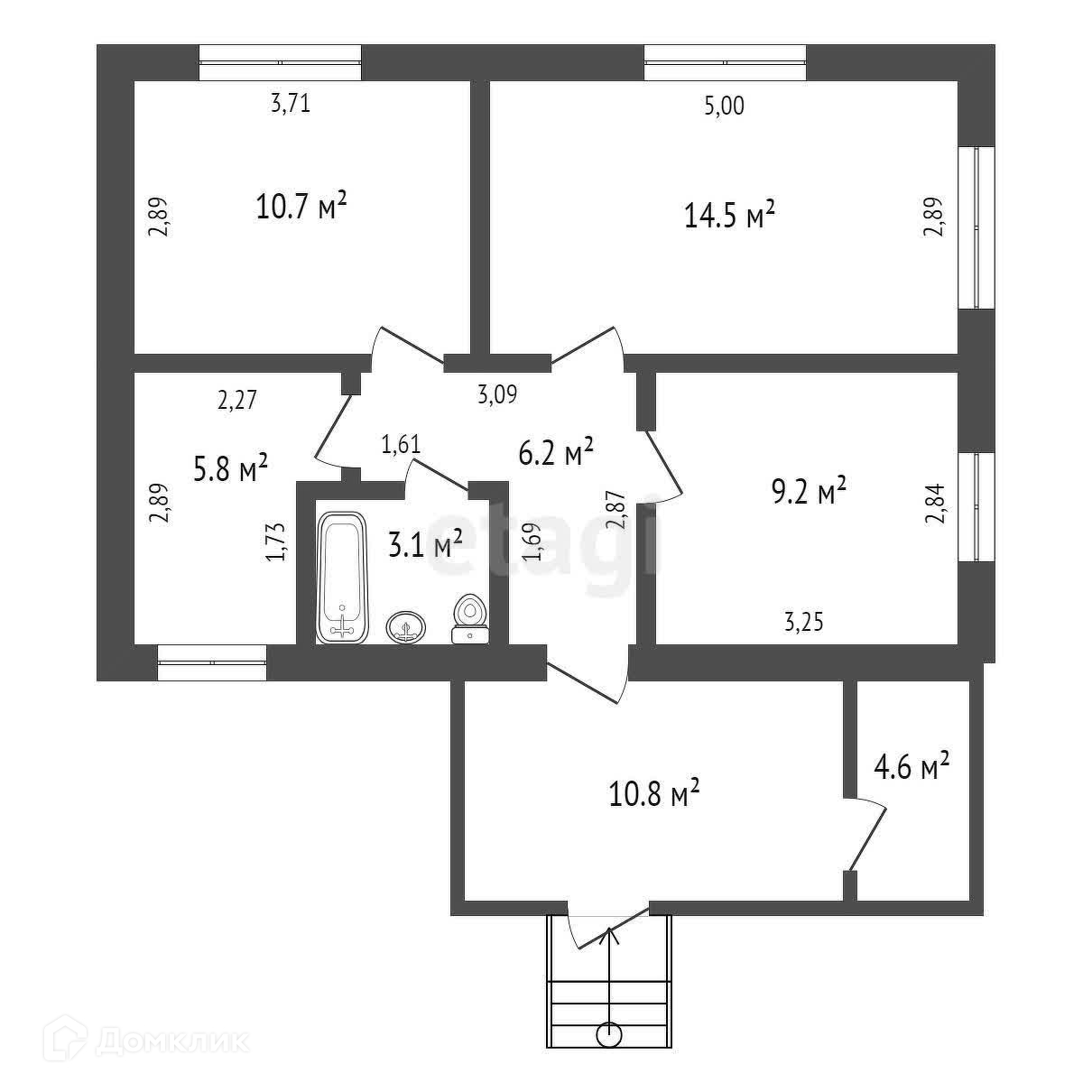Общая площадь 49.5 м2
