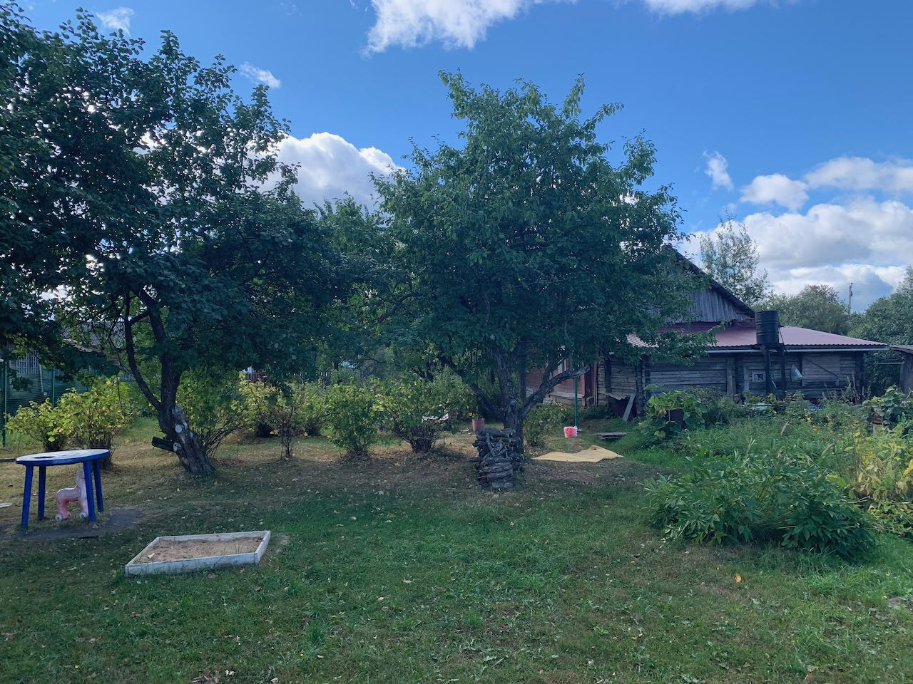 Участок ухоженный, много плодовых деревьев (яблони, груша, сливы, черная рябина, калина). Много новых деревьев. Установлена бочка на 200 литров для полива. На участке остаются 2 больших теплицы (6 на 3 метра) с качественным поликарбонатом. Для детей сделана песочница, оборудовано место под мангал.